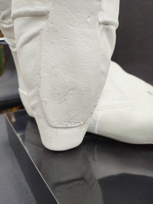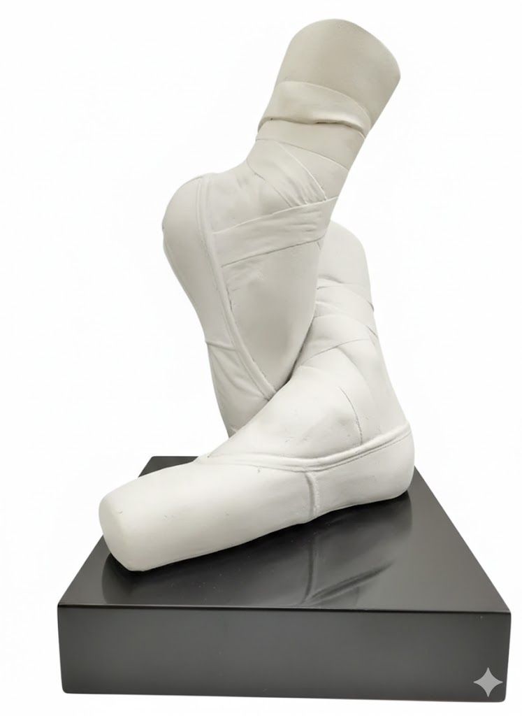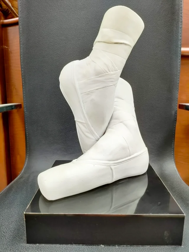 Exclusive sculpture of ballet slippers “Waiting in wings” of Austin Productions (1987). Signed by Cutrone, made of plaster on a wooden base.