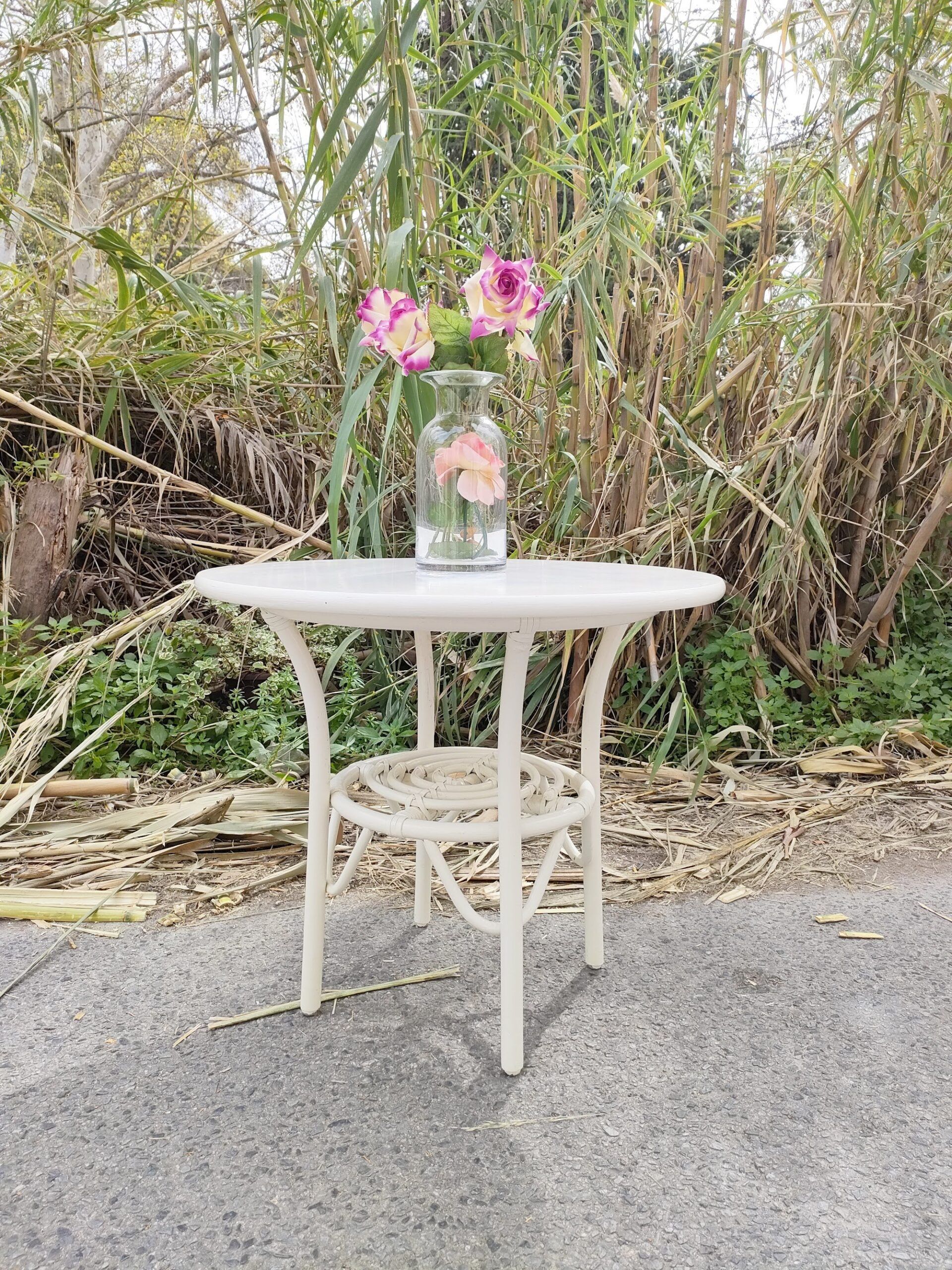 The combination of white painted wood and natural bamboo creates an elegant contrast, ideal for interiors with Mediterranean aesthetics, tropical or contemporary with artisanal touches. Perfect as a side table, coffee table or decorative piece in living rooms, covered terraces or commercial spaces that value the unique.