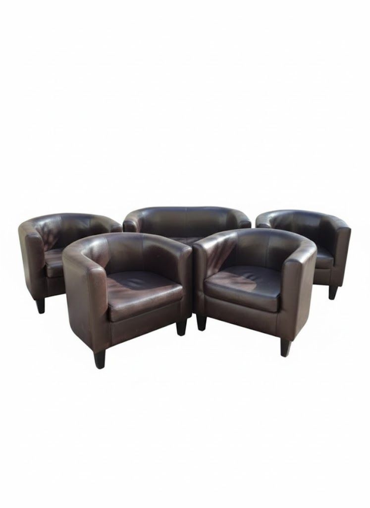 This wenge-colored leatherette armchair is a versatile piece that combines contemporary design with functionality.. Its enveloping shape and compact dimensions make it the perfect option for spaces that seek comfort without giving up style..