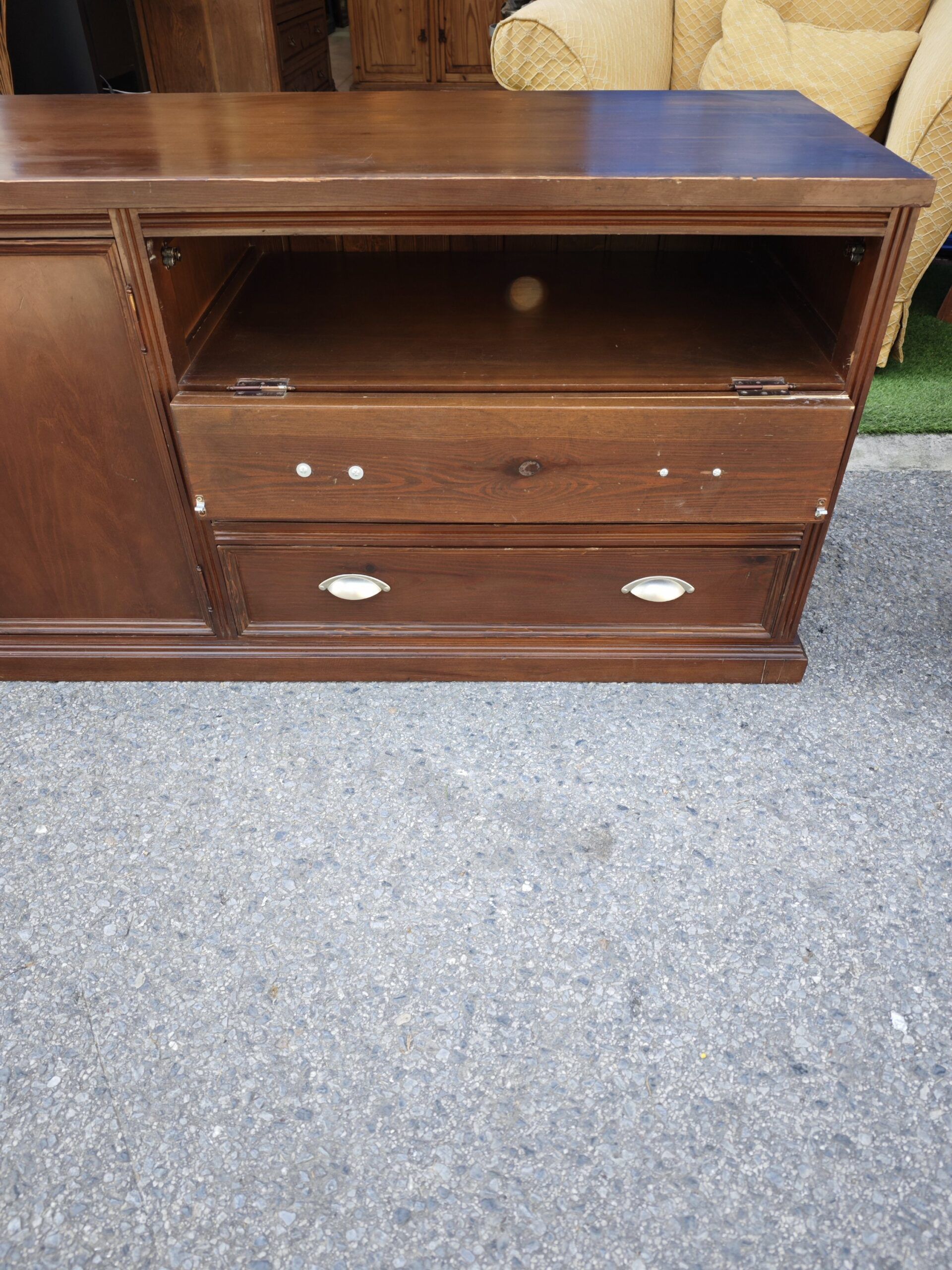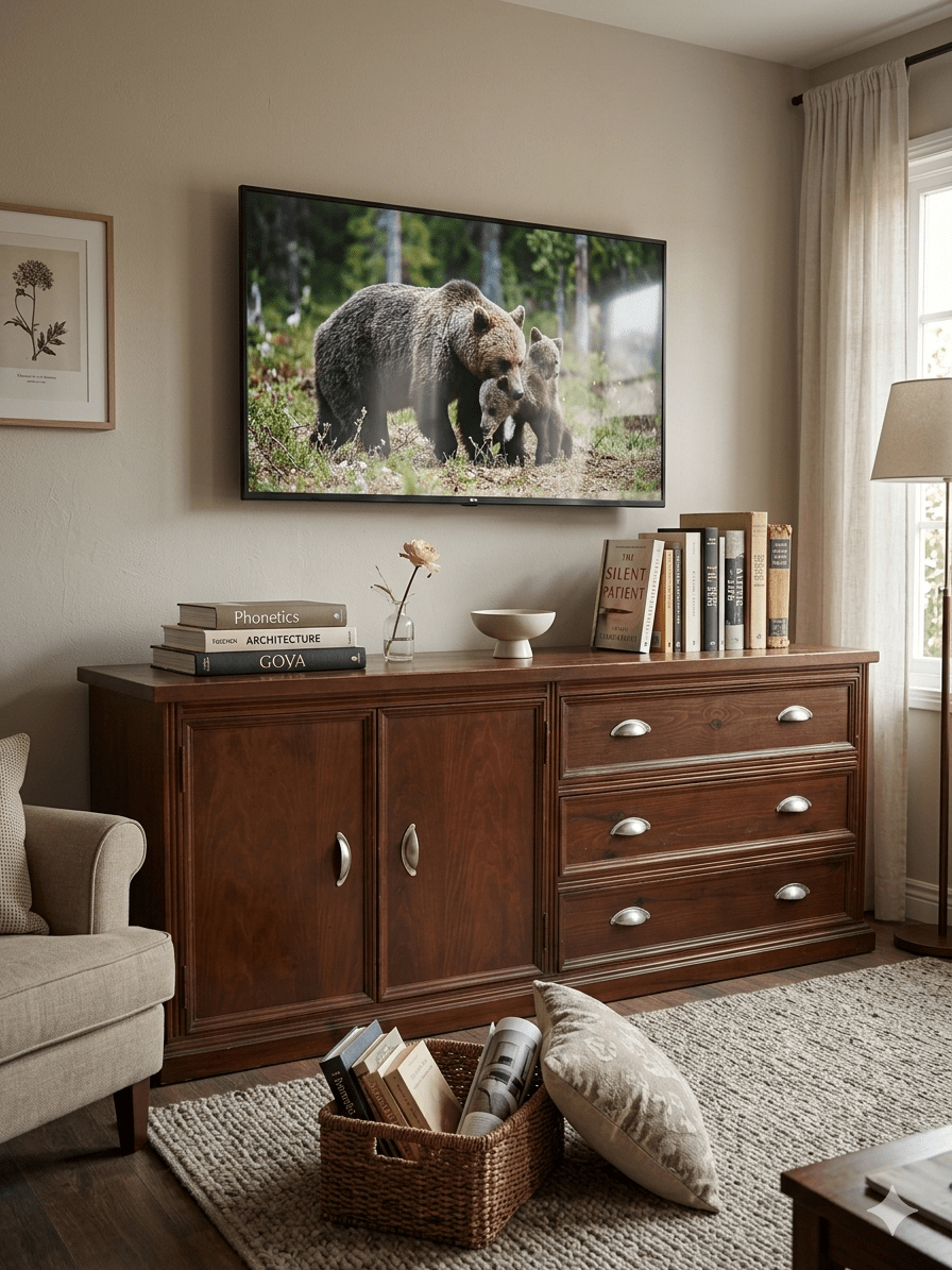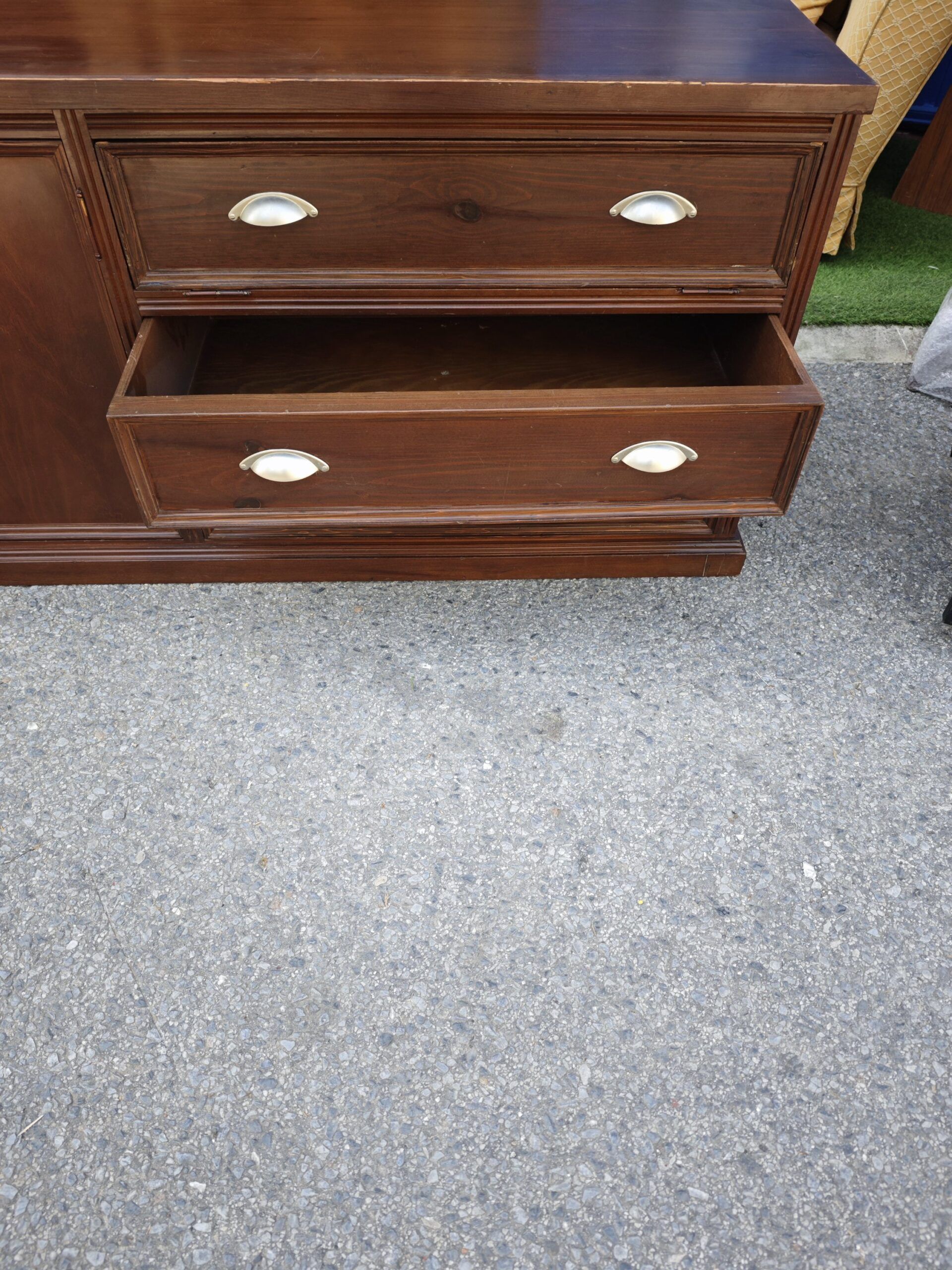 Elegante aparador bajo de estilo rústico contemporáneo, fabricado en madera con un cálido acabado en tono nogal. Este mueble destaca por su diseño funcional y equilibrado, dividido en dos secciones: un módulo de doble puerta con gran capacidad de almacenaje y un bloque de tres cajones amplios. Los tiradores metálicos tipo concha en acabado plata satinada aportan un toque industrial vintage que moderniza la pieza. Gracias a su altura de 70 cm, es el mueble perfecto para utilizar como mueble de televisión, buffet en el comedor o incluso como pieza de entrada en recibidores amplios. Su estructura sólida y líneas limpias garantizan una integración armoniosa en cualquier estancia.