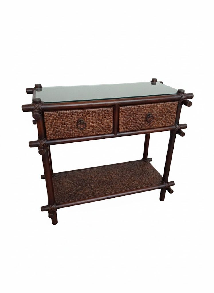Esta consola de bambú es una pieza compacta y elegante que destaca por su diseño artesanal y su estética tropical. Fabricada con estructura de bambú natural, combina materiales sostenibles con acabados cálidos y texturizados. El sobre de cristal templado aporta ligereza visual y funcionalidad, permitiendo apreciar los detalles del mueble sin perder luminosidad.