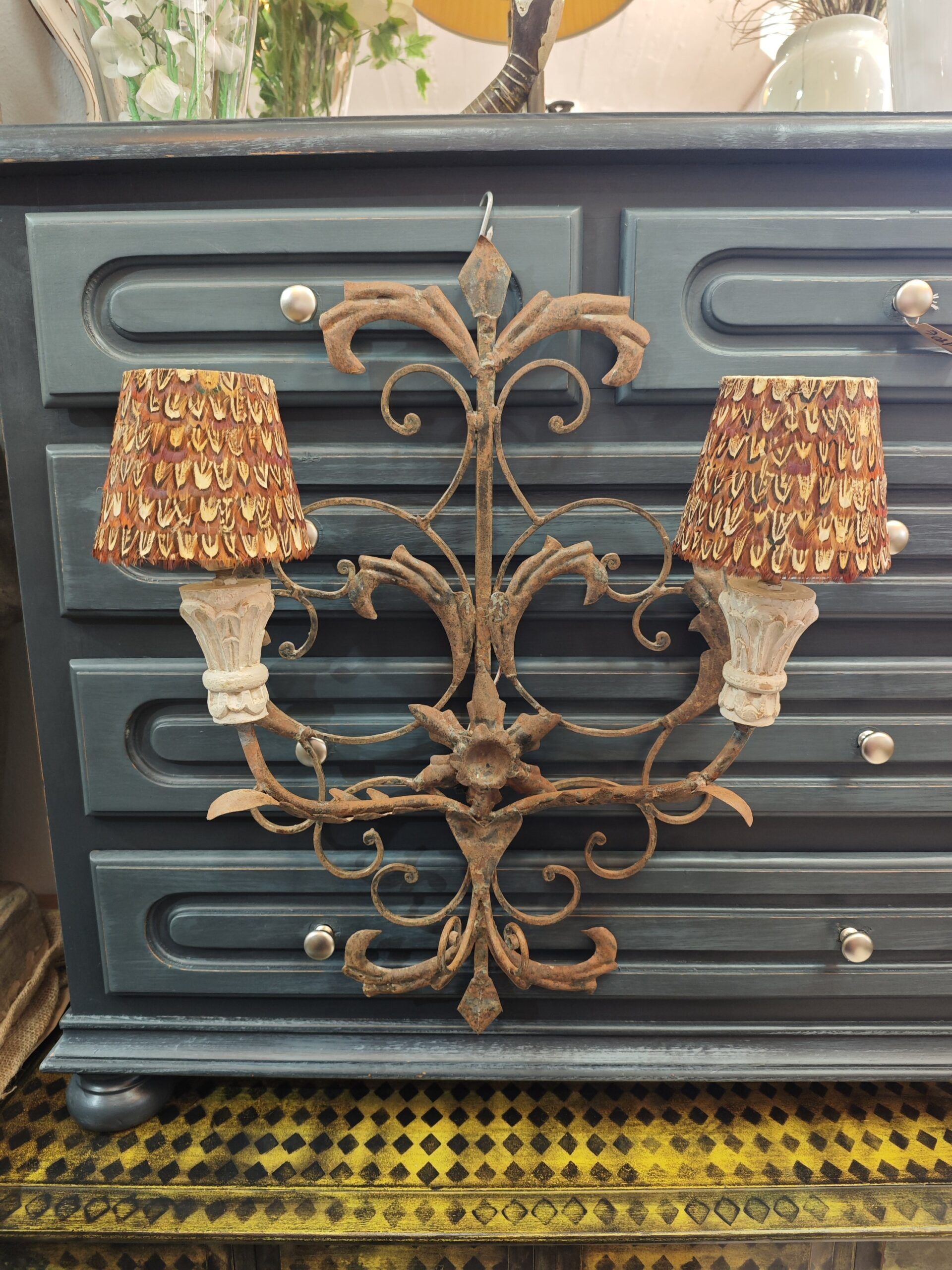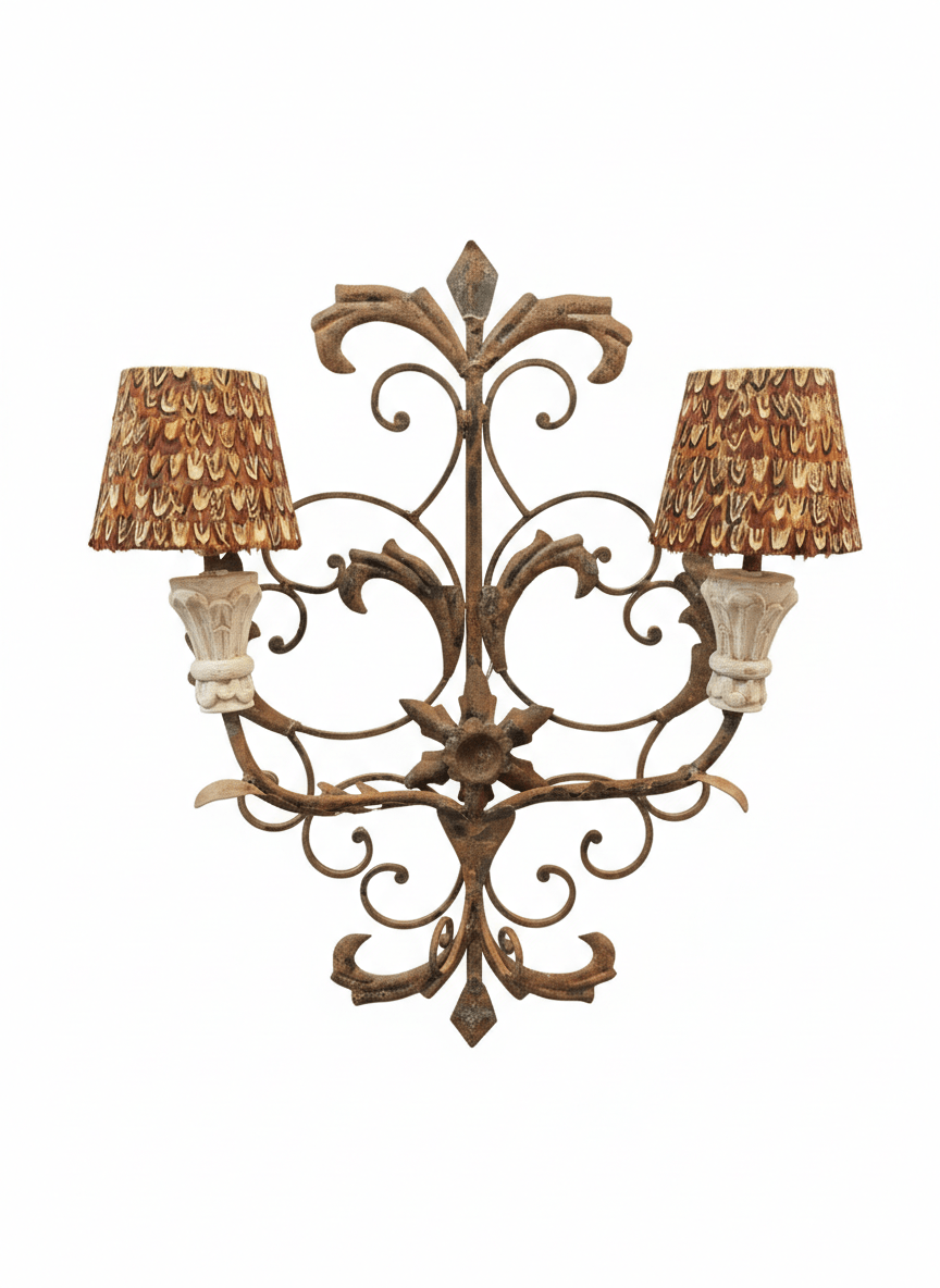 La combinación de texturas entre el metal rígido y la suavidad de las plumas permite una difusión de luz cálida y ambiental, ideal para crear atmósferas acogedoras en dormitorios, salones o recibidores elegantes. Su fabricación robusta garantiza estabilidad, mientras que su estilo artístico lo convierte en el punto focal de cualquier pared. Es una pieza clave para proyectos de interiorismo de lujo, estilo art déco o ambientes modernos que buscan un elemento distintivo y refinado.