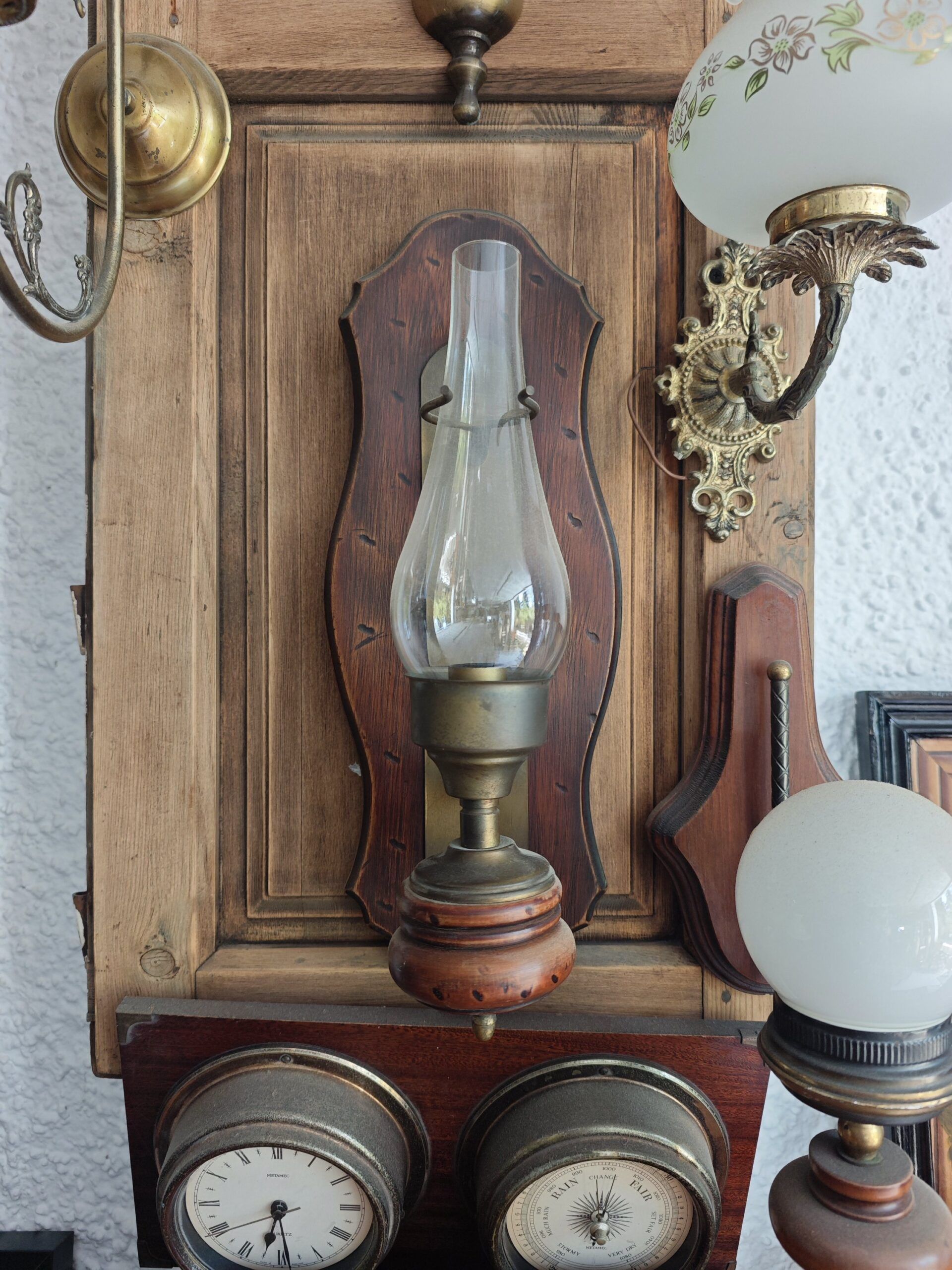 Añade un carácter distintivo a tu decoración con este aplique de pared tipo quinqué, que fusiona el encanto del diseño antiguo con materiales de alta calidad. Esta lámpara cuenta con una base de madera maciza elegantemente tallada y una estructura metálica con acabado envejecido que sostiene una tulipa de cristal opalino en tono crema. Su diseño está pensado para proyectar una iluminación suave y difusa, creando una atmósfera cálida y nostálgica en cualquier estancia. Es una pieza ideal para ambientes que buscan un estilo rústico, clásico o retro, perfecta para iluminar pasillos, dormitorios o zonas de paso con un toque de elegancia atemporal.