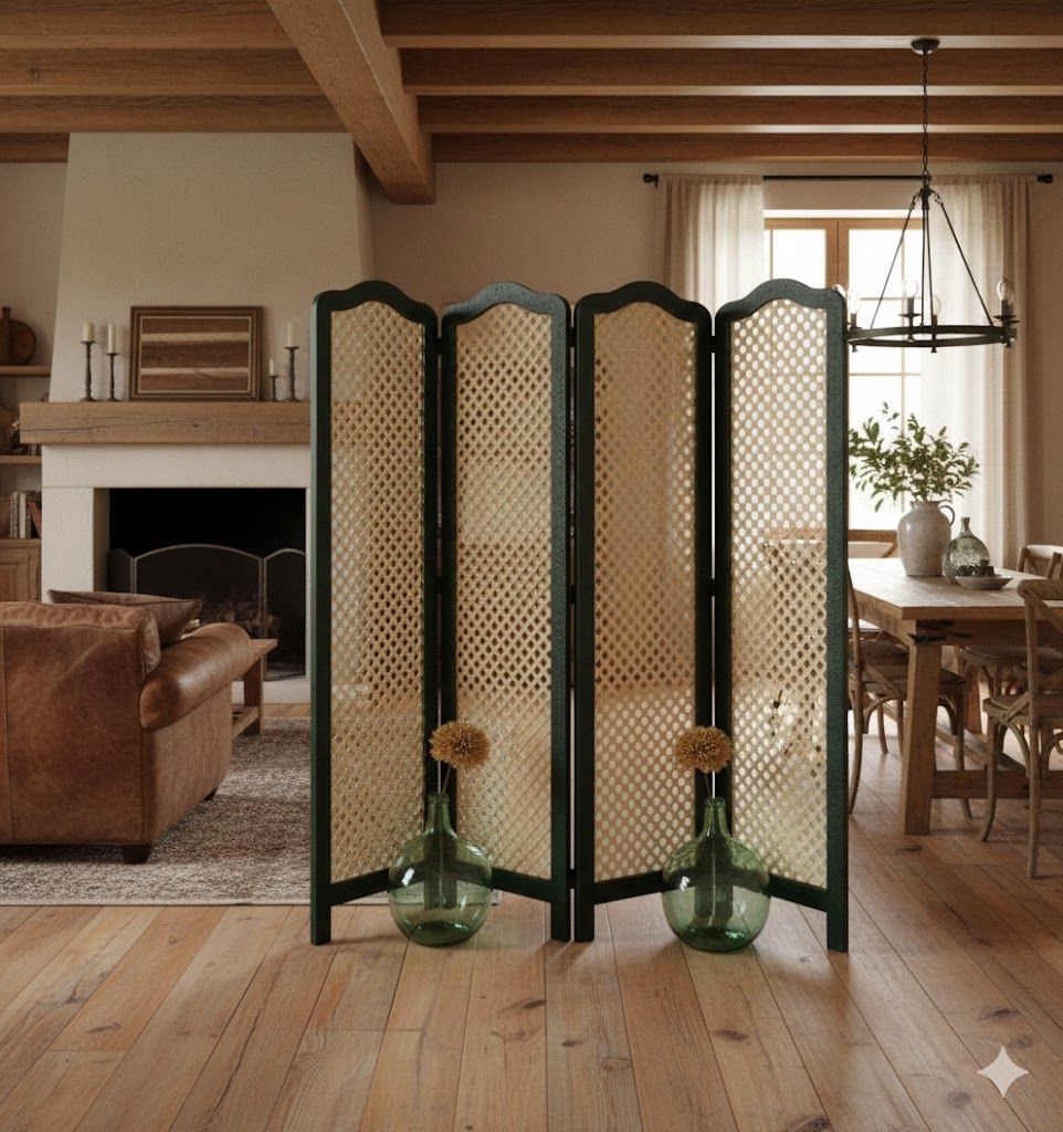Perfecto para interiores con estilo clásico, bohemio, oriental o rústico, este biombo puede utilizarse en salones, dormitorios, estudios o espacios comerciales como hoteles boutique, escaparates o showrooms. Su altura casi completa y su anchura extendida permiten crear separaciones elegantes sin perder luminosidad ni fluidez espacial.