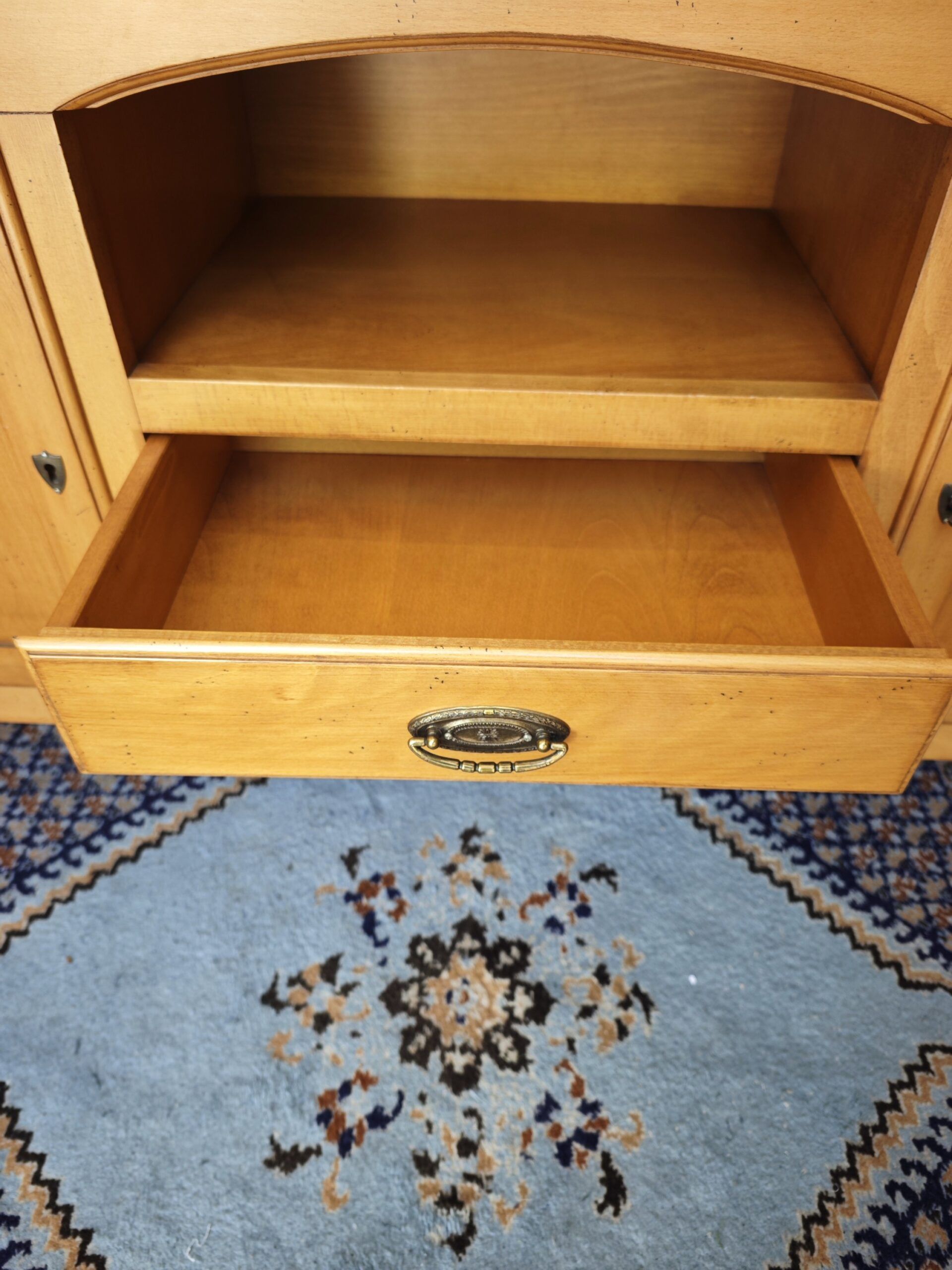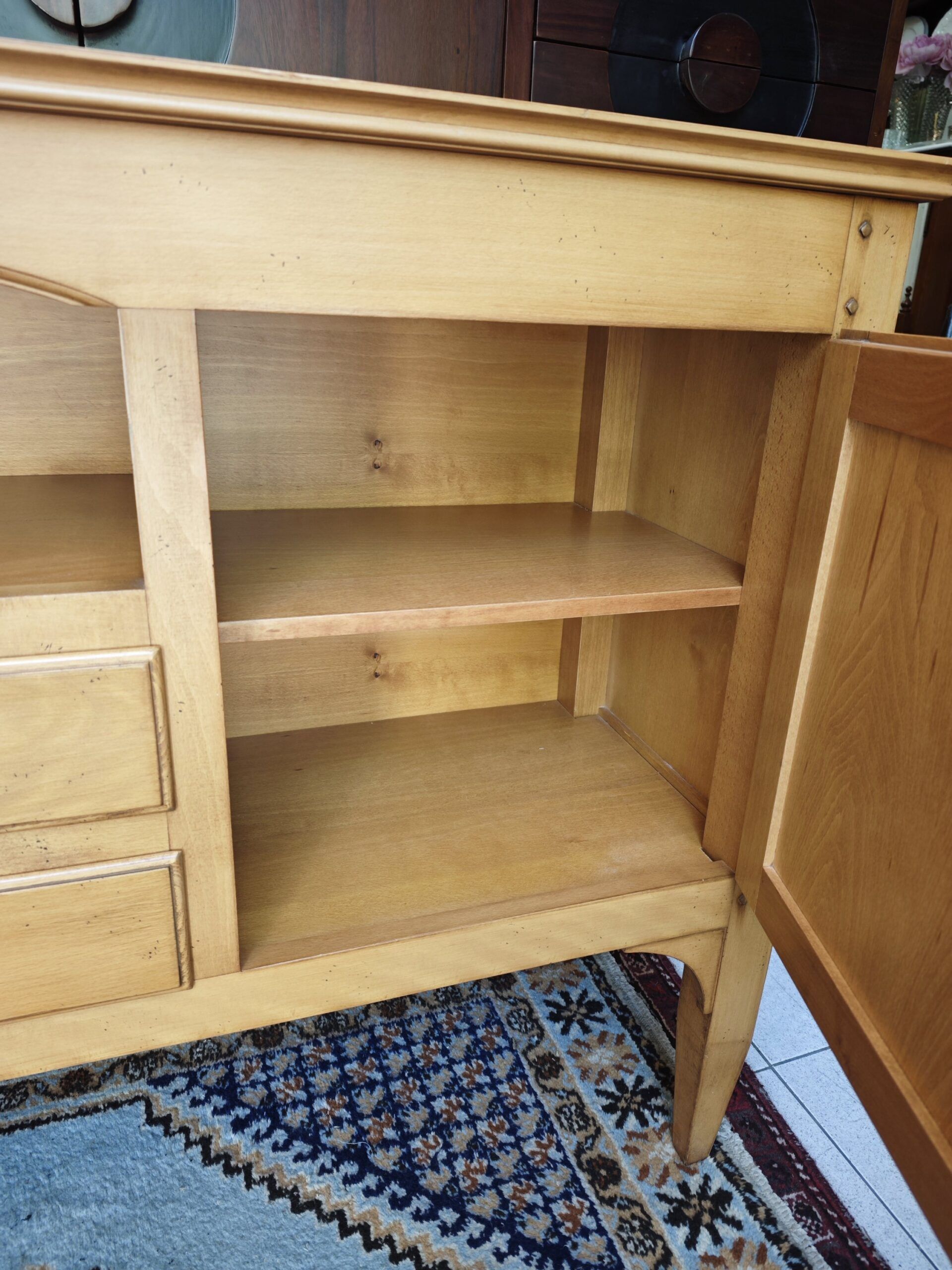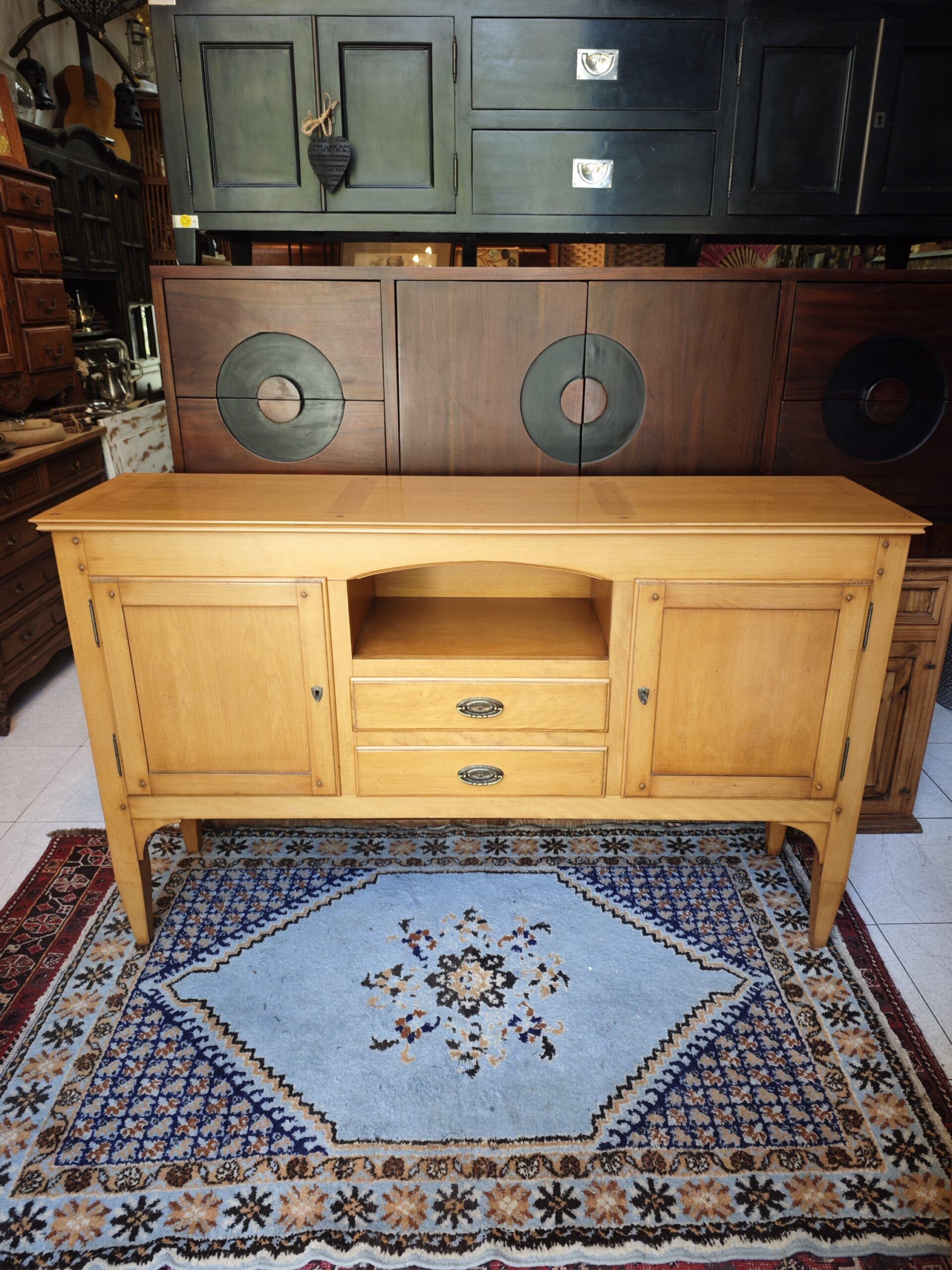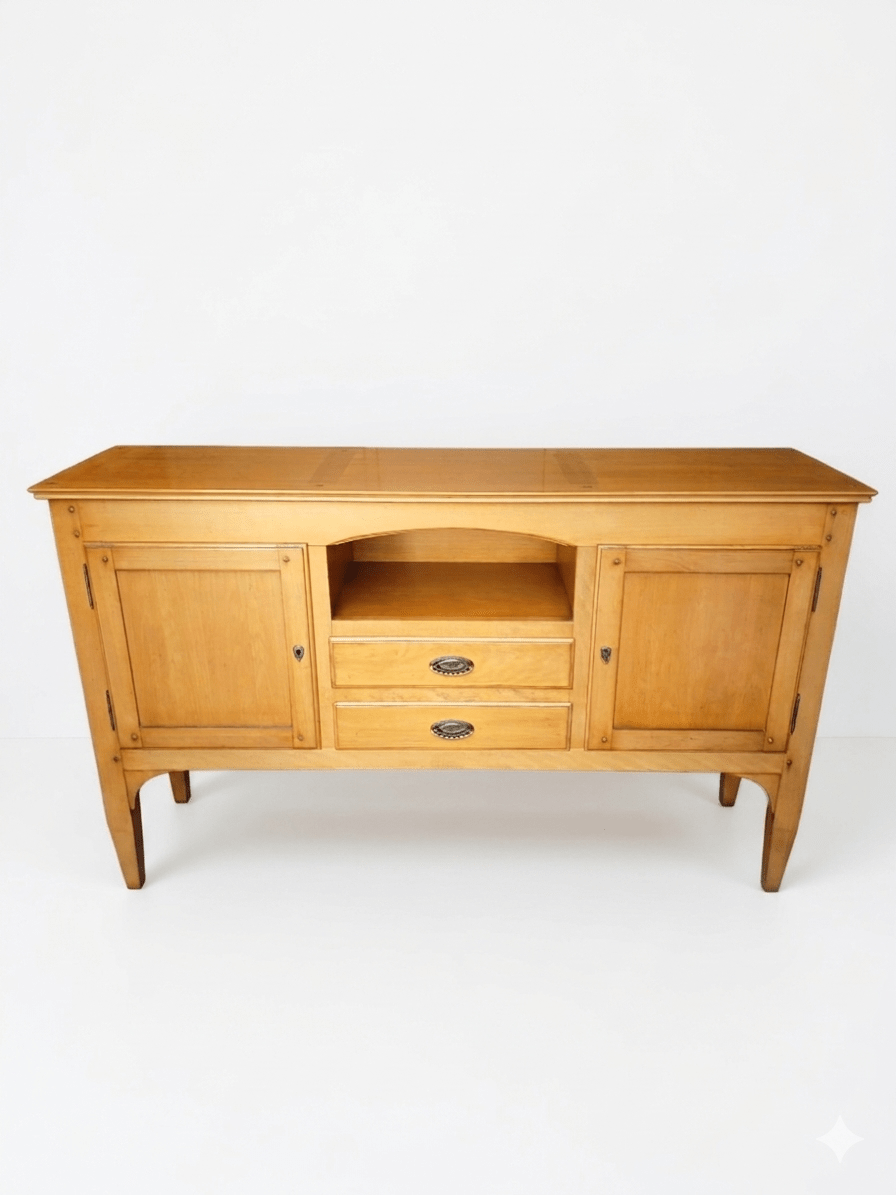 Presentamos una pieza que personifica el equilibrio perfecto entre la ebanistería tradicional y la practicidad contemporánea. Este aparador, realizado en madera de haya de veta suave y luminosa, es una oda a la robustez y la sobriedad que define a los muebles de calidad superior.