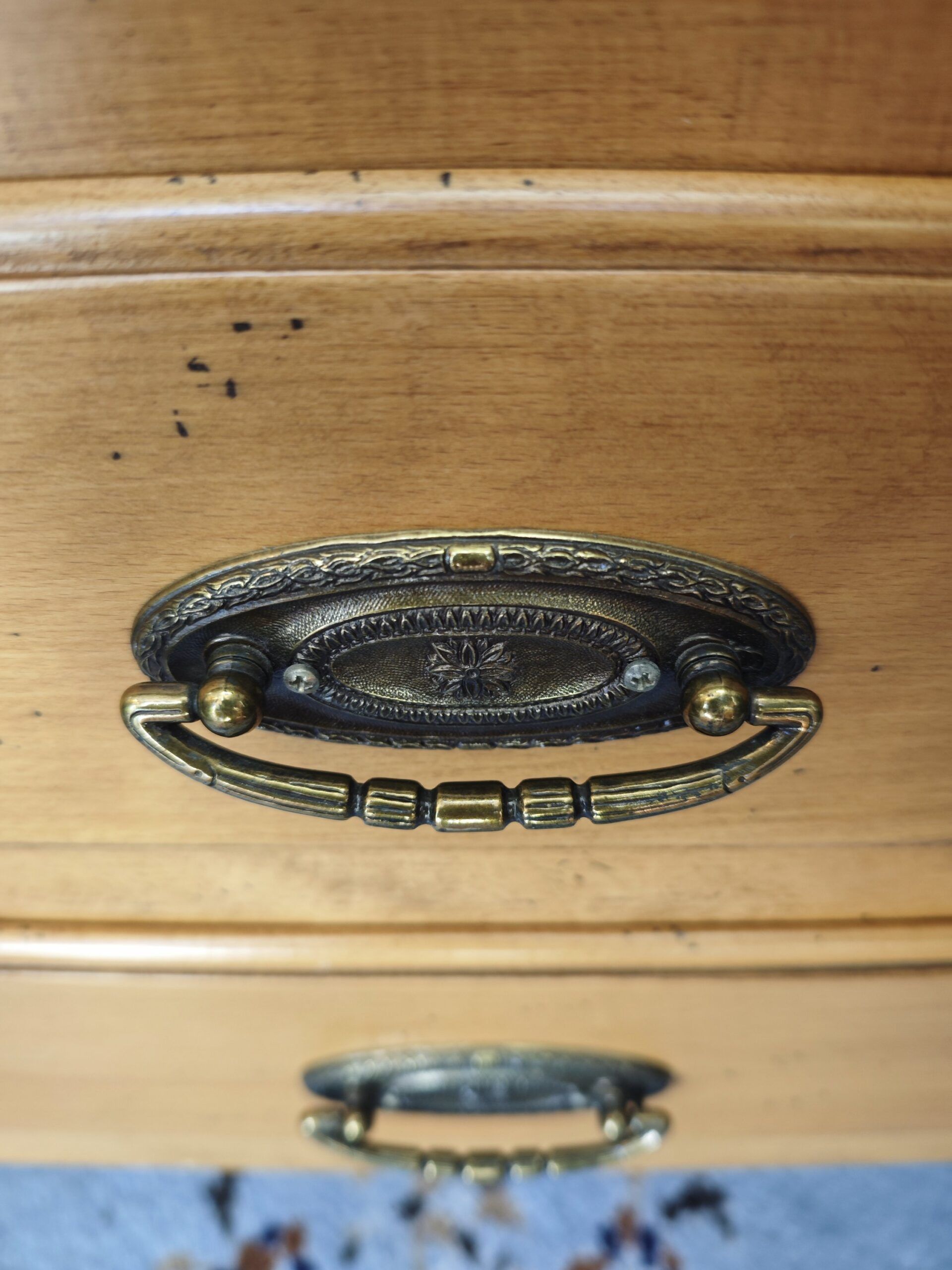 La madera de haya ha sido históricamente valorada por su densidad, resistencia y su capacidad para ofrecer acabados sedosos al tacto. Este mueble evoca la honestidad estructural de los grandes talleres de carpintería, donde la durabilidad es la prioridad. El detalle del arco central rebajado y los tiradores de metal envejecido añaden una capa de historia y carácter auténtico que el mobiliario de fabricación industrial moderna no puede replicar.