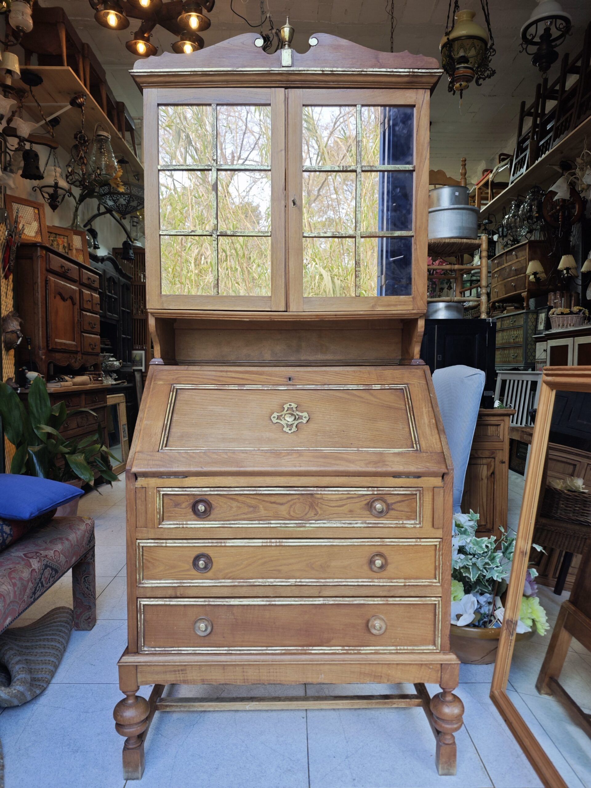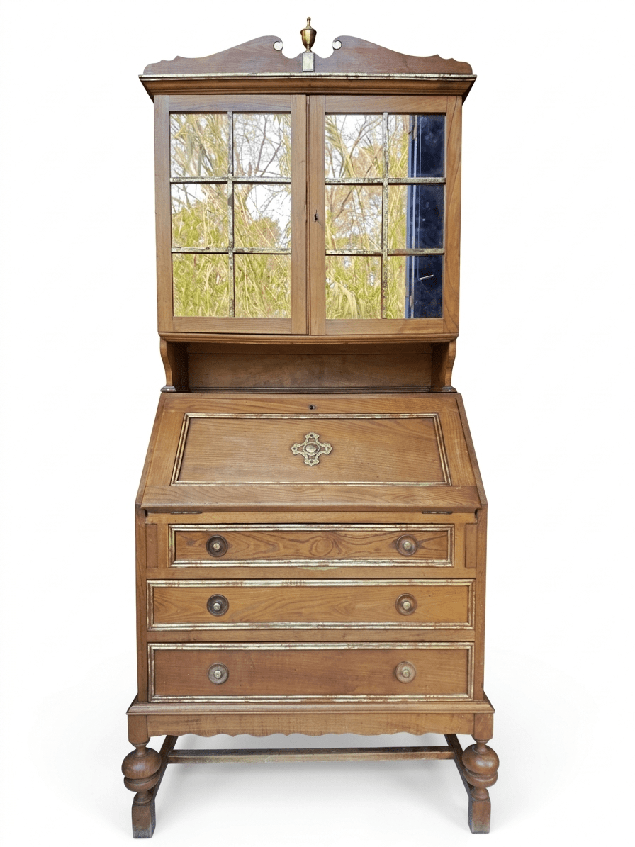 Bureaux-Cabinet Vintage de Madera con Vitrina y Secreter Abatible