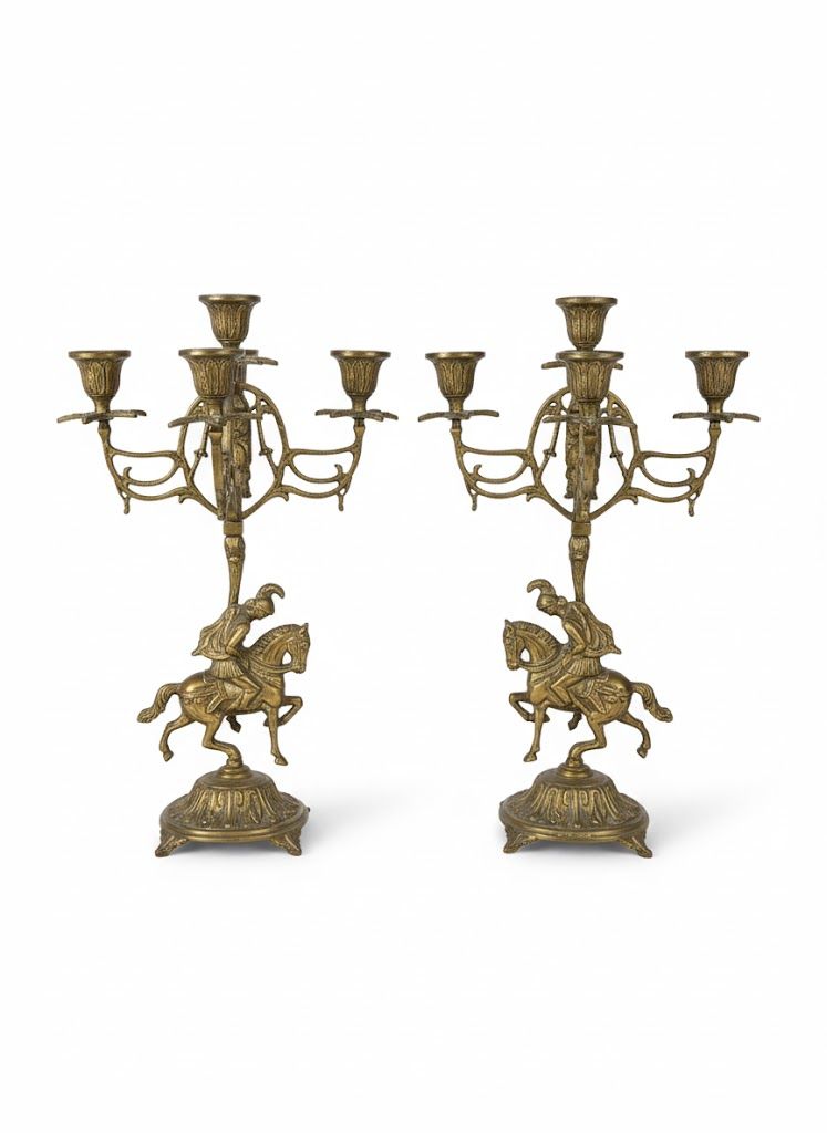 Candelabro guerrero romano 5 brazos. 2 unidades.  Medidas; 24cm ancho x 24cm fondo x 36cm altura