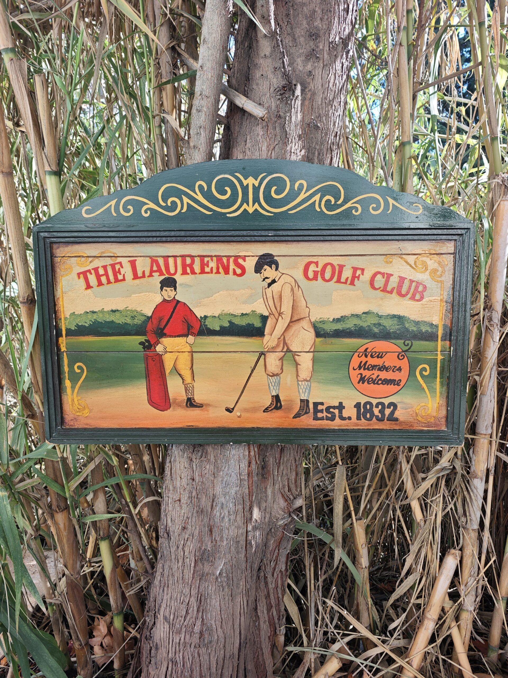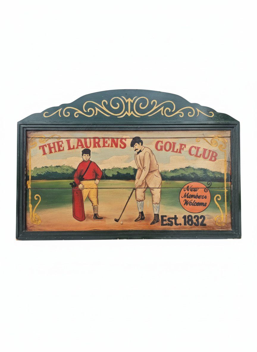 Añade un toque de distinción y elegancia clásica a tu hogar con este cartel de madera vintage de «The Laurens Golf Club«. Este impresionante letrero decorativo está diseñado con un estilo rústico y envejecido, evocando la atmósfera de los clubes de golf más exclusivos del siglo XIX. La pieza presenta una ilustración detallada pintada a mano que muestra a un golfista y su caddie con vestimenta tradicional, sobre un fondo que simula madera recuperada con la inscripción «Est. 1832».