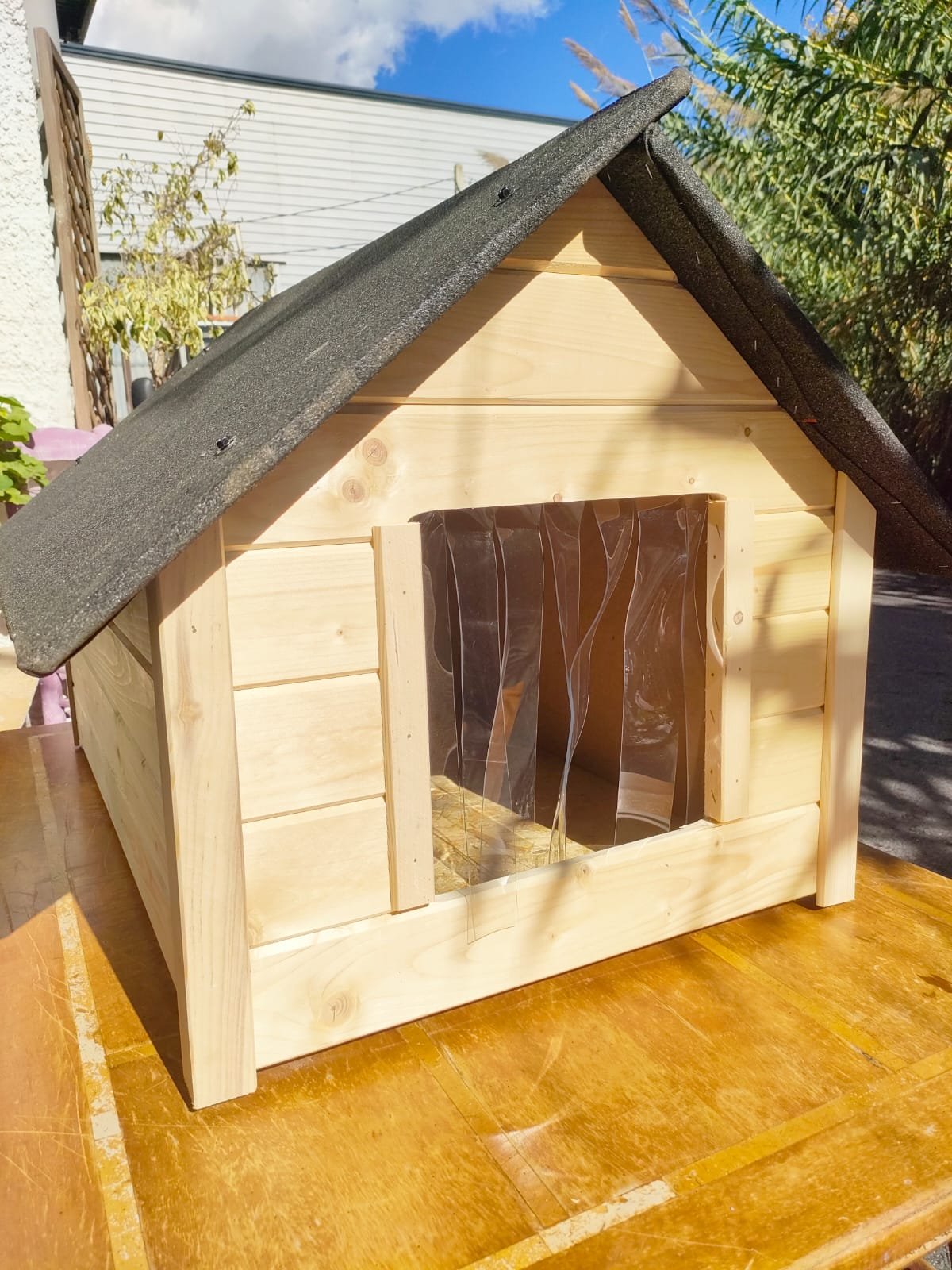 Ideal para patios, jardines o terrazas, esta caseta combina estética y funcionalidad, creando un espacio cómodo y seguro para tu perro. Su diseño neutro se adapta a cualquier entorno exterior y puede personalizarse fácilmente con pintura o accesorios.