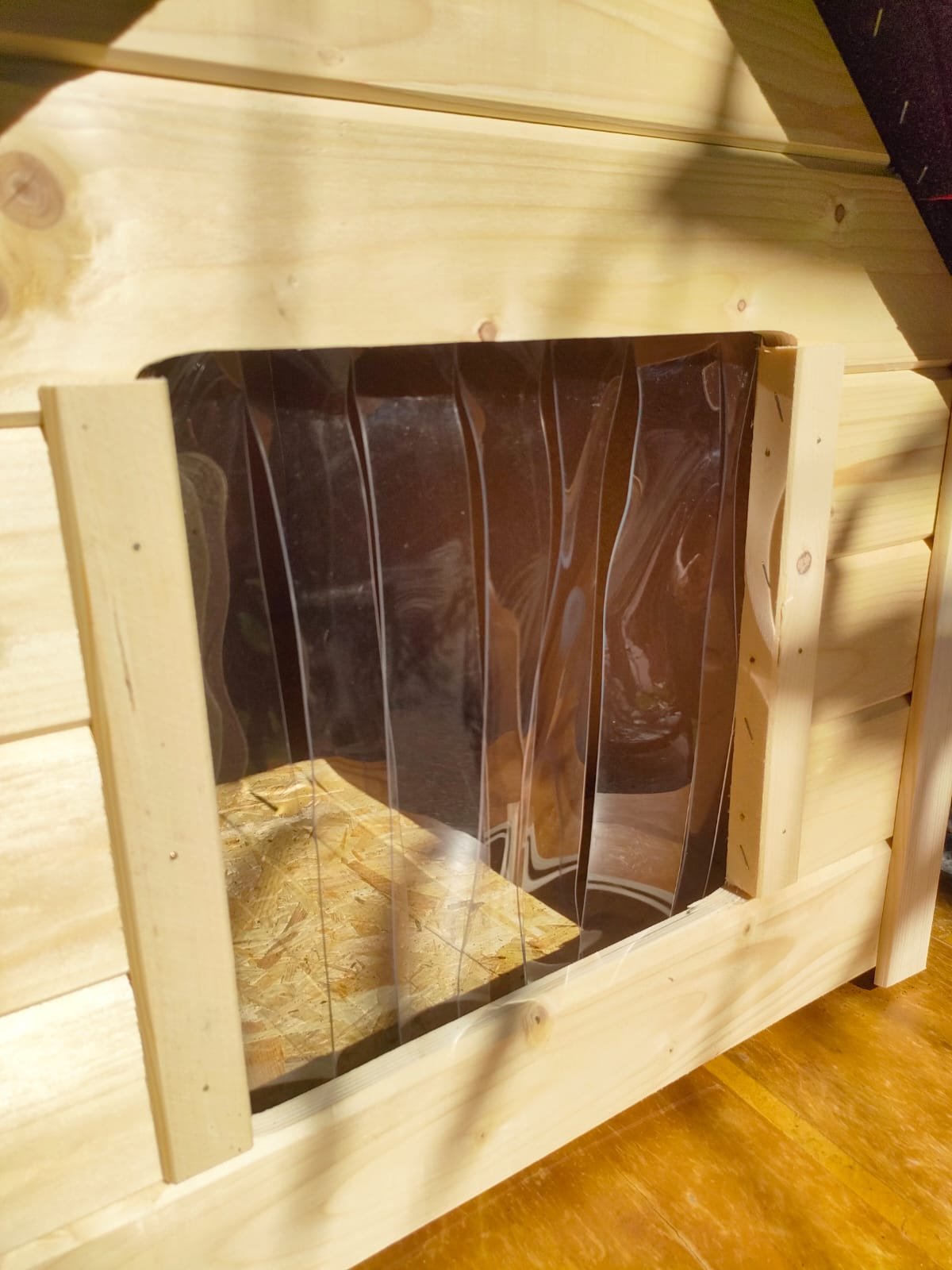 Ofrece a tu mascota el refugio perfecto con esta caseta de madera de estilo tradicional. Fabricada con paneles de madera natural de alta calidad, su estructura robusta y techo a dos aguas con tejas asfálticas garantiza protección contra el sol y la lluvia. La entrada está equipada con tiras de plástico transparente que permiten el acceso fácil del animal mientras lo resguardan del viento y la humedad.
