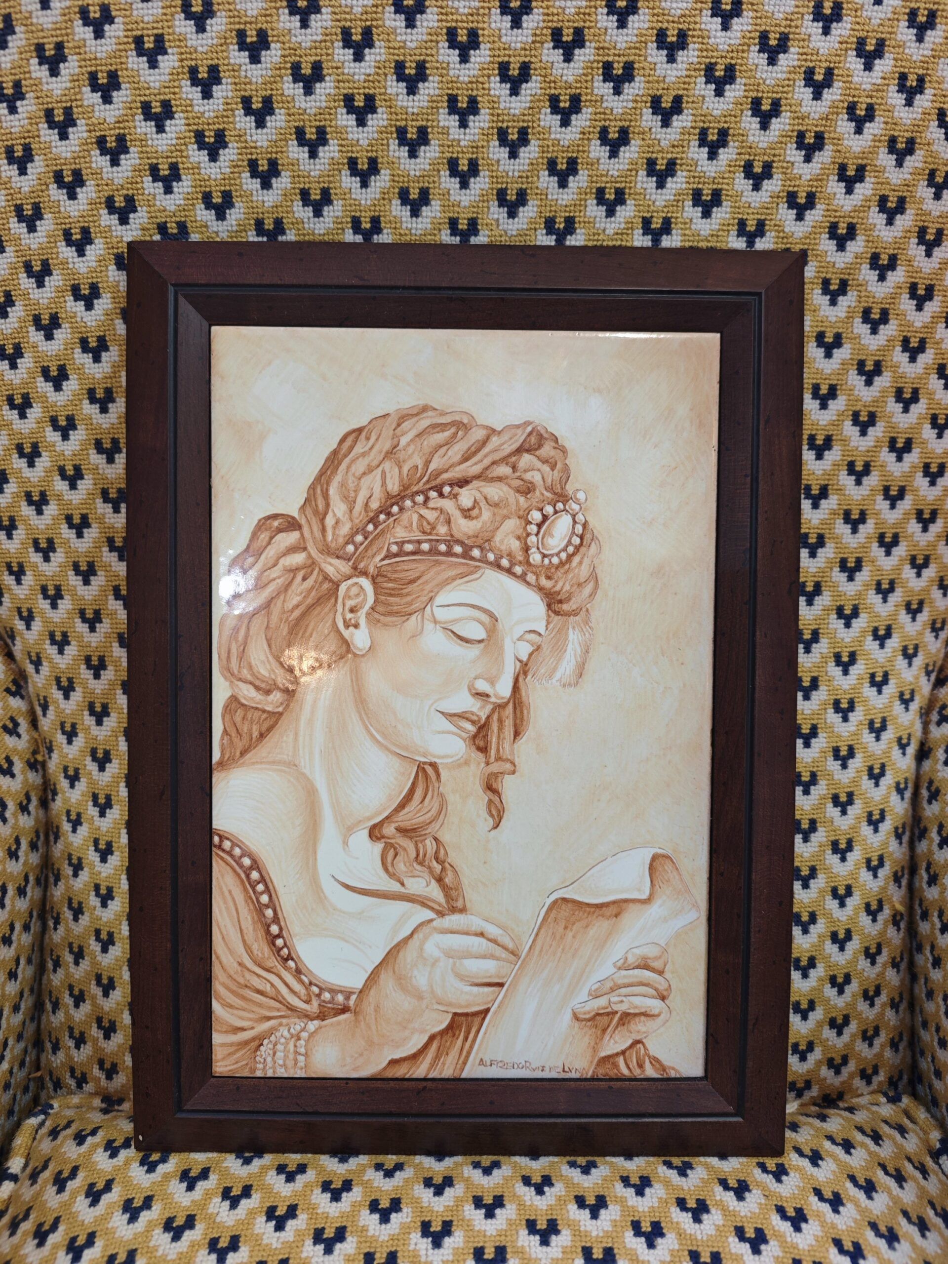 cerámica enmarcada pintado a mano Alfredo Ruiz de Luna
