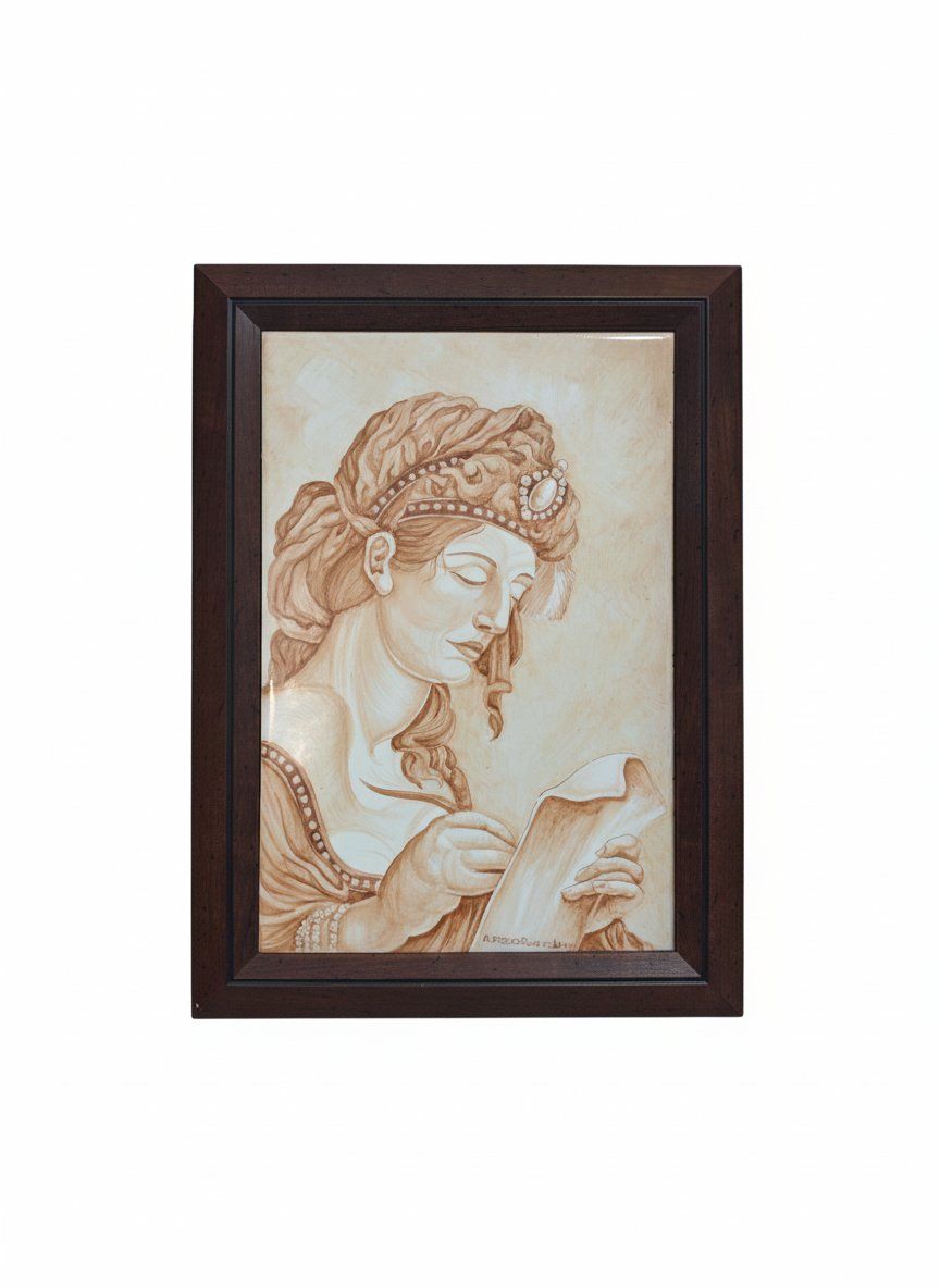 Cuadro artístico enmarcado del autor Alfredo Ruiz de Luna, con figura femenina de inspiración clásica en tonos cálidos. Medidas: 37 cm de alto x 27 cm de ancho. Pieza decorativa elegante y atemporal, ideal para interiores clásicos o vintage.