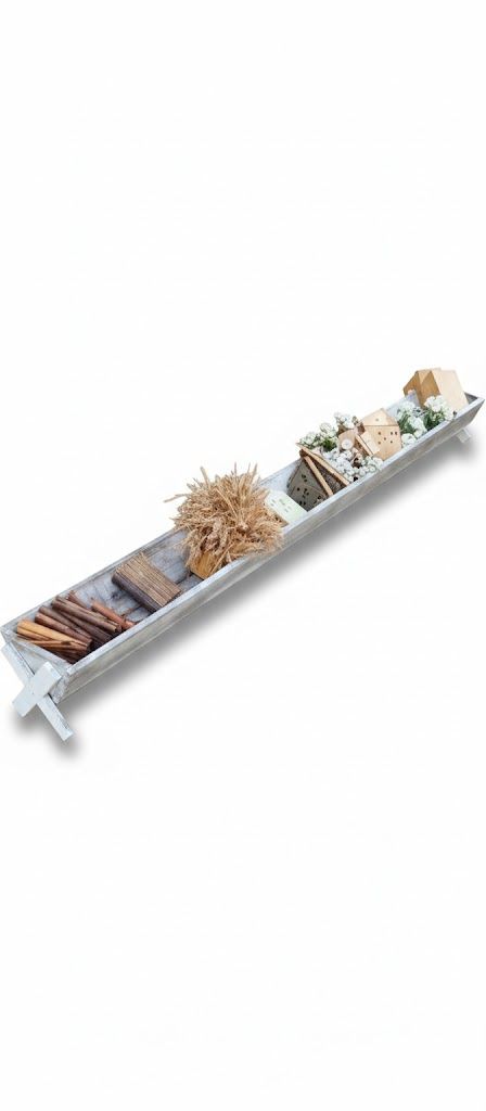 Pieza original con carácter rural, este antiguo comedero doble de pollos es una joya para amantes de la decoración vintage, agrícola o industrial. Su diseño alargado y compartimentado lo convierte en un elemento versátil: perfecto como jardinera, expositor decorativo o mueble auxiliar con historia.