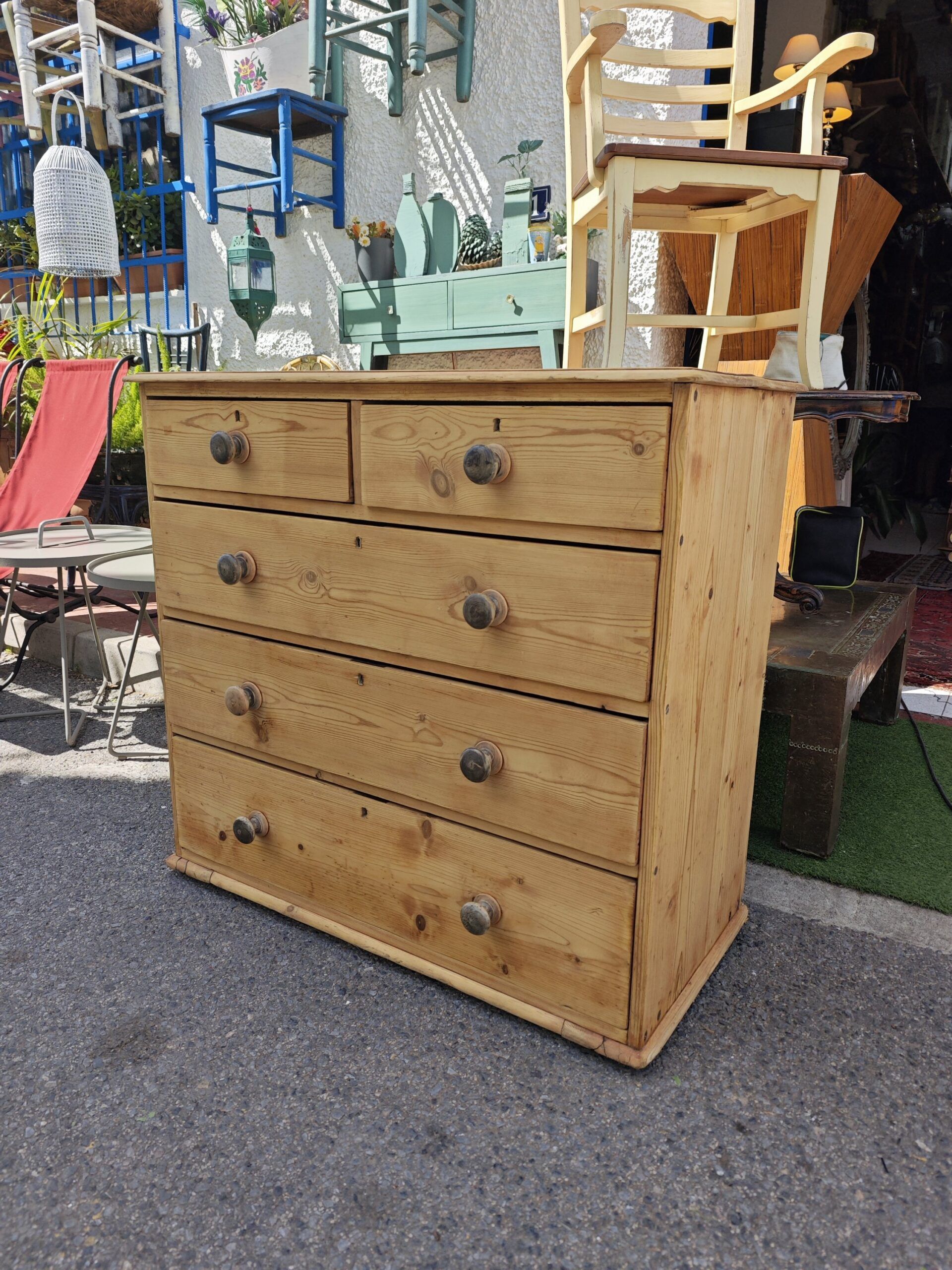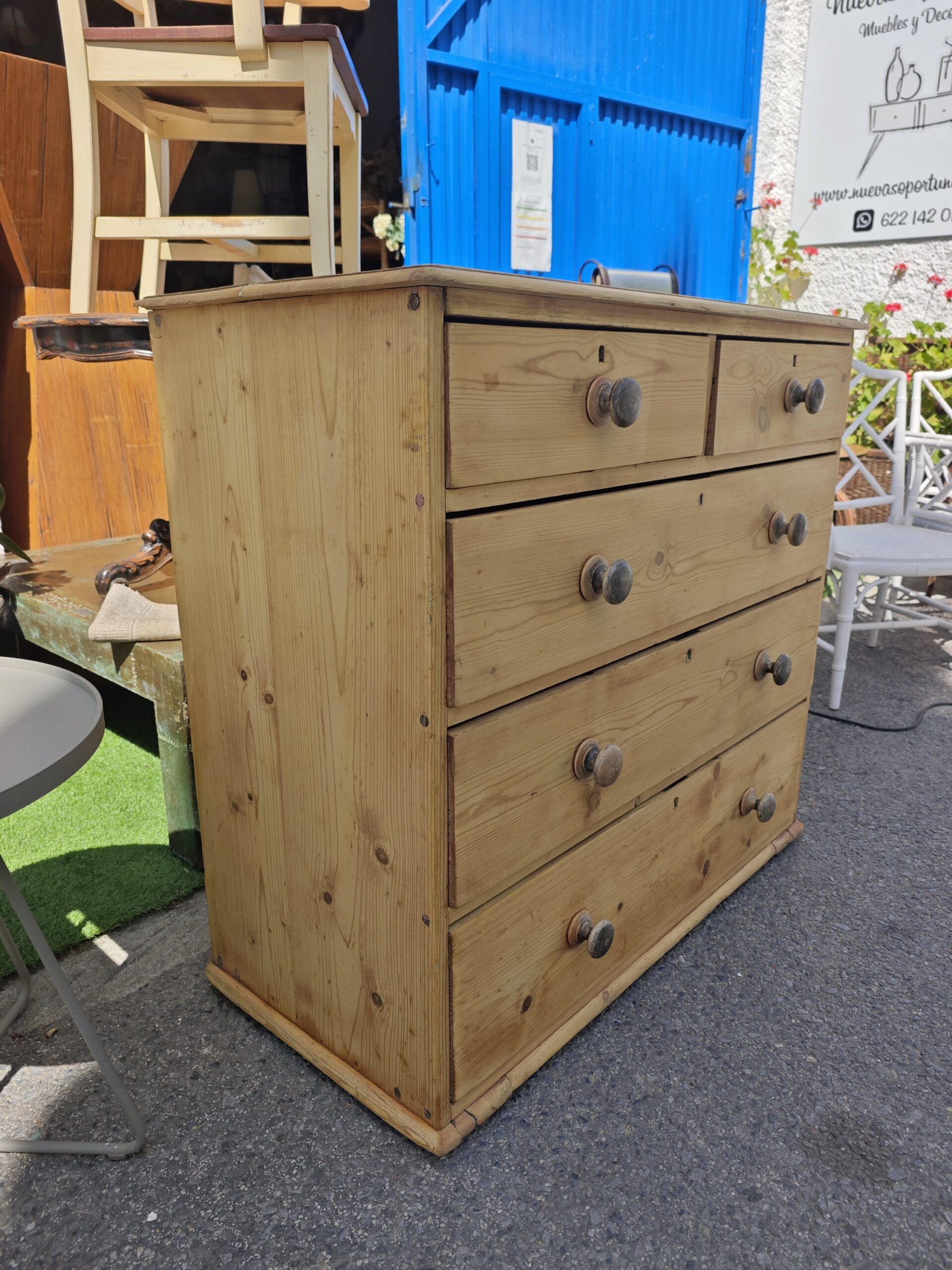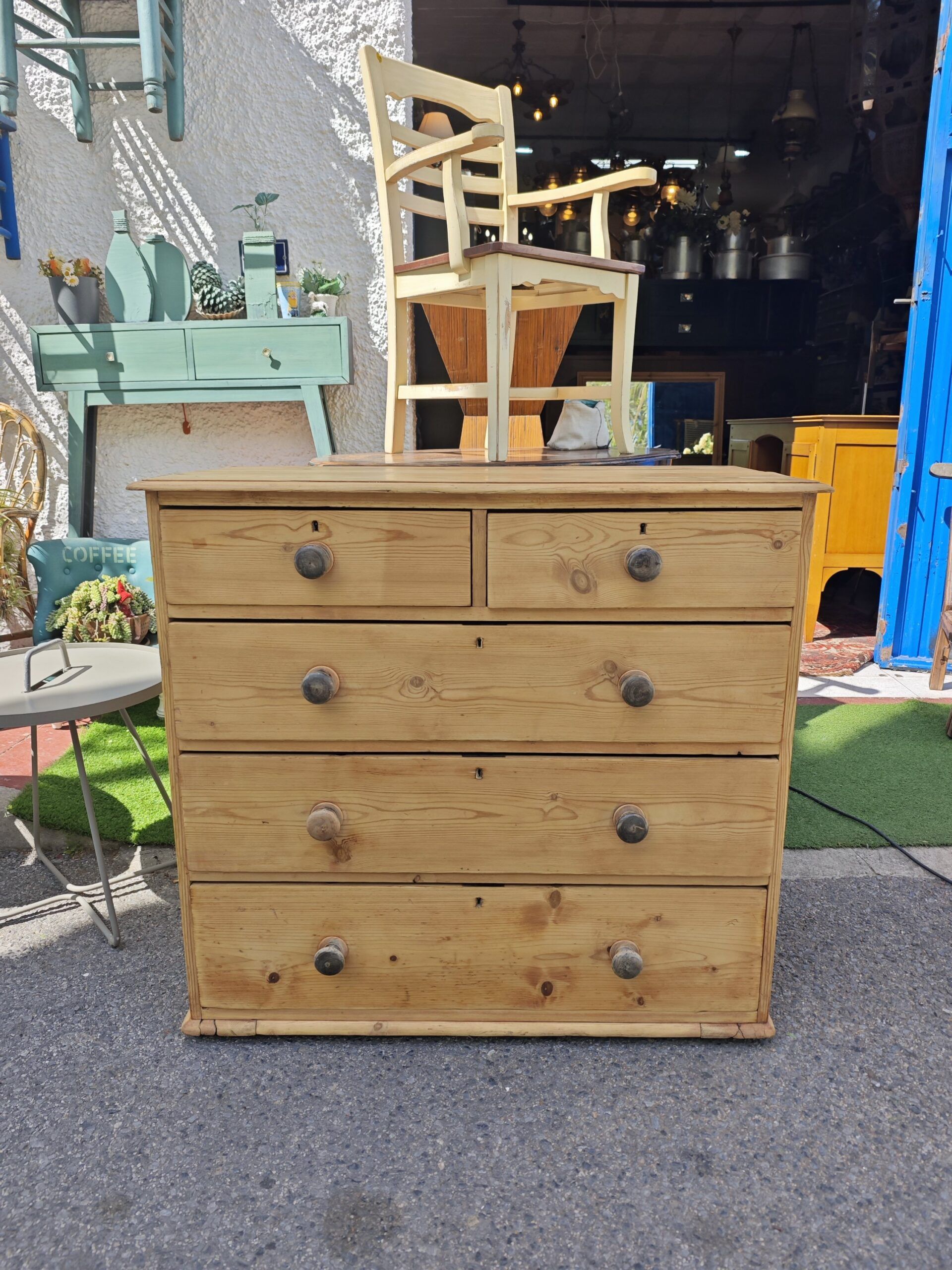 Cómoda Inglesa «Victorian Heritage», con estructura de cinco cajones y herrajes originales. Madera tratada y encerada con acabado natural.
