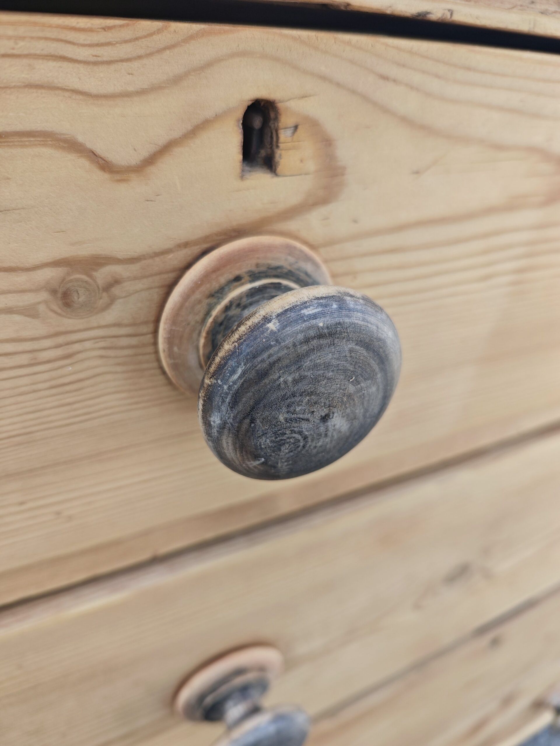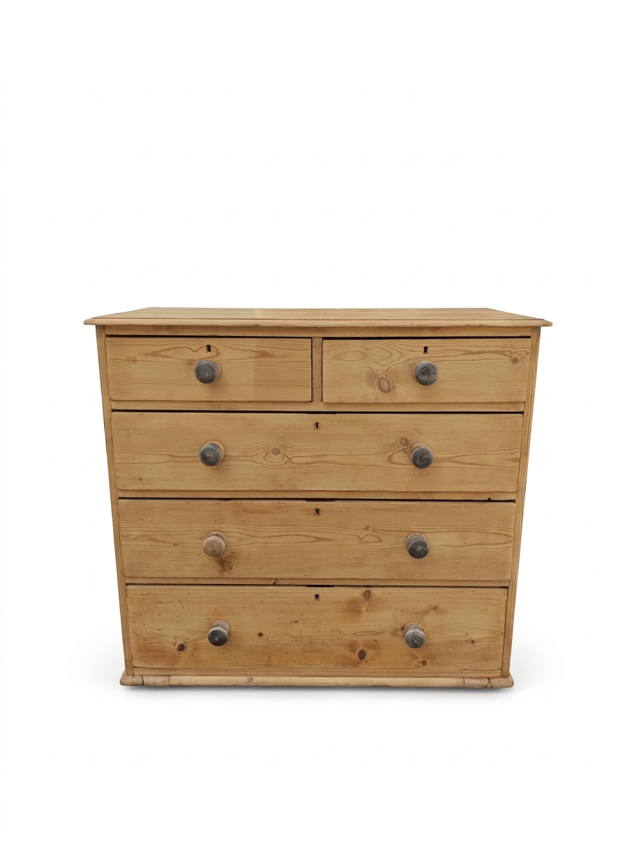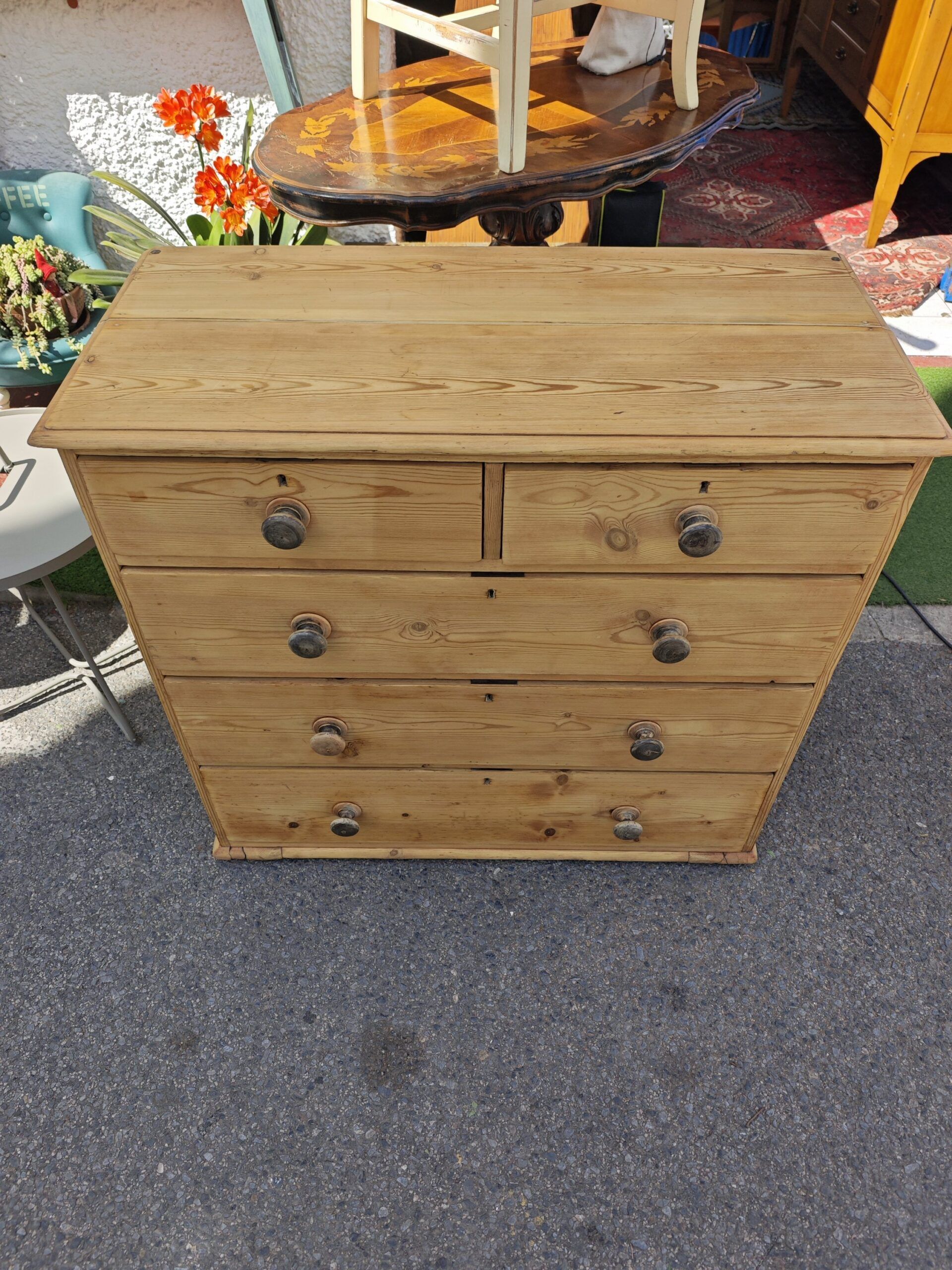 Cómoda Inglesa «Victorian Heritage», con estructura de cinco cajones y herrajes originales. Madera tratada y encerada con acabado natural.