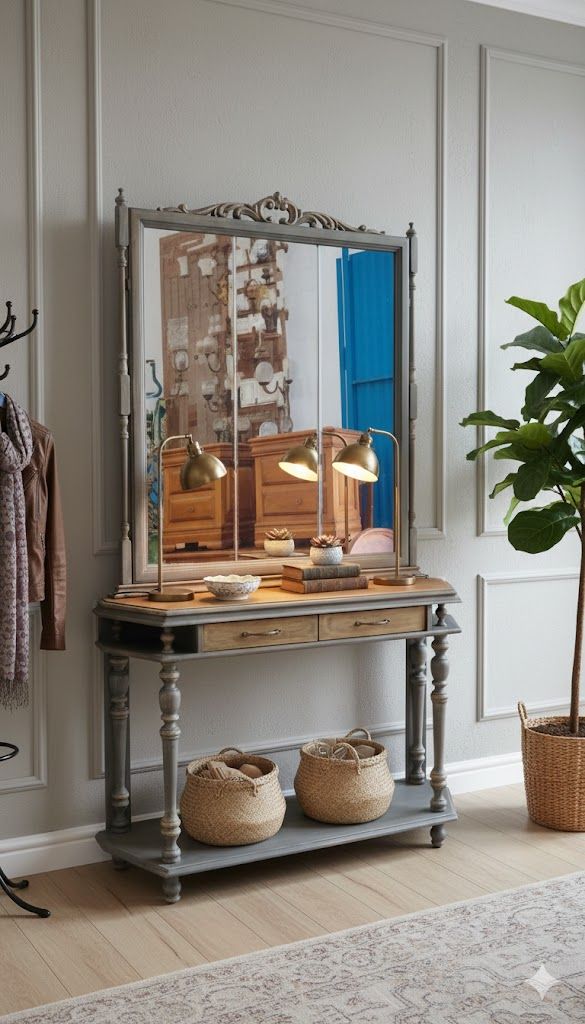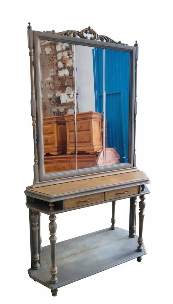 – Distribución: 2 cajones + espejo tríptico + repisa inferior