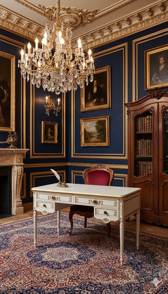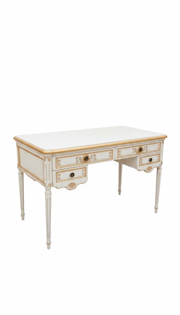 Escritorio Clásico Blanco y Dorado – Elegancia Francesa