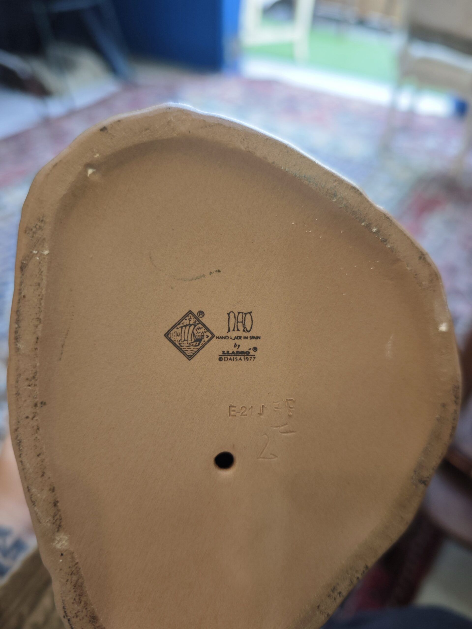 Fabricada a mano en España, esta pieza pertenece a la prestigiosa firma del grupo Lladró. A diferencia de las figuras tradicionales de tonos pastel, esta edición destaca por su esmaltado naturalista en tonos tierra, ocres y grises profundos, que resaltan cada detalle del plumaje. La base conserva el sello de autenticidad de NAO, el grabado de DAISA 1977 y la referencia de serie, garantizando su valor como objeto de colección vintage.