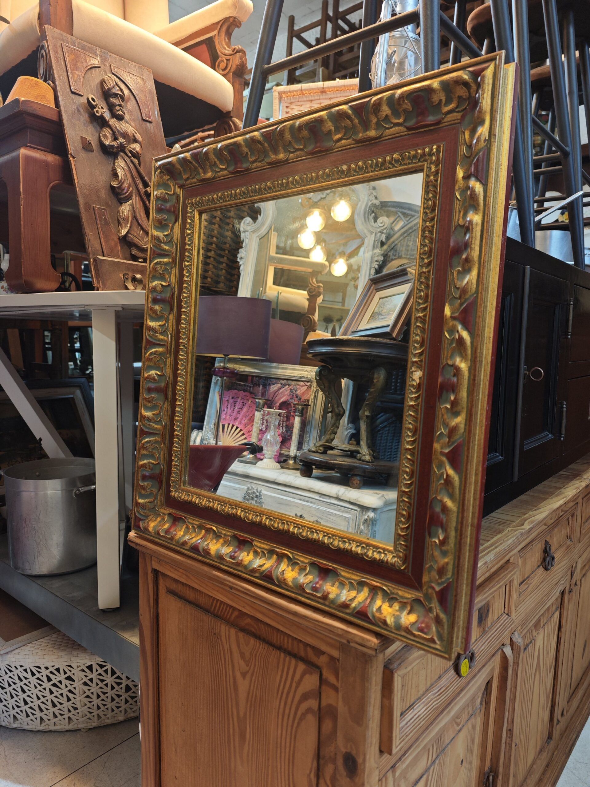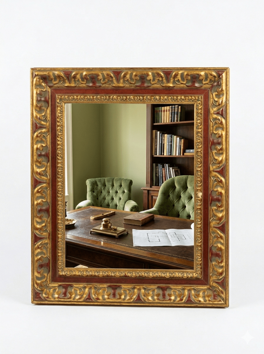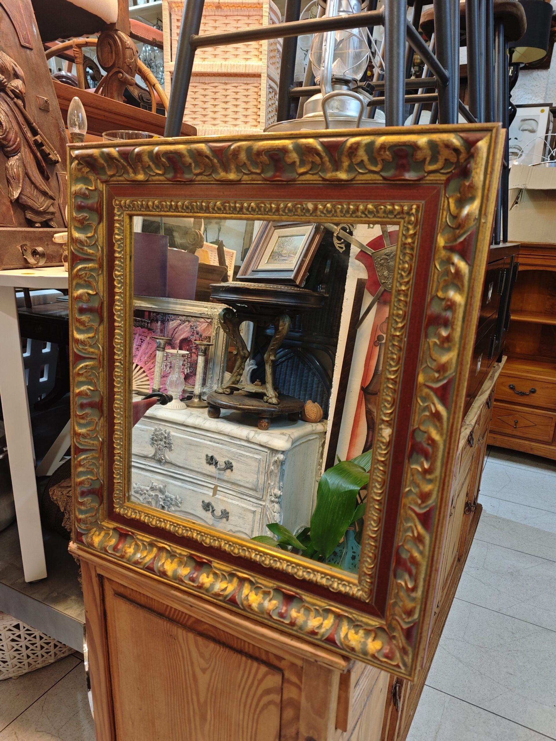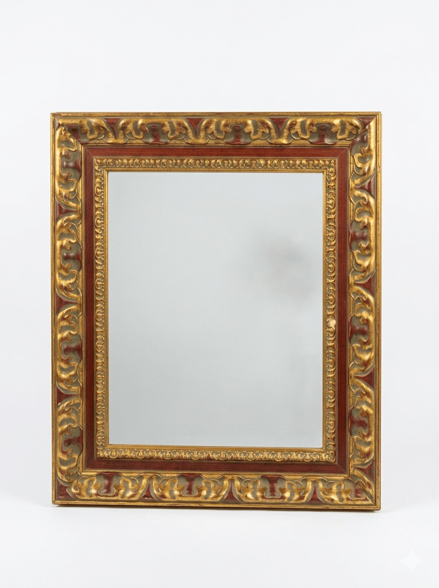 Espejo de Estilo Barroco con Marco Tallado en Dorado y Granate