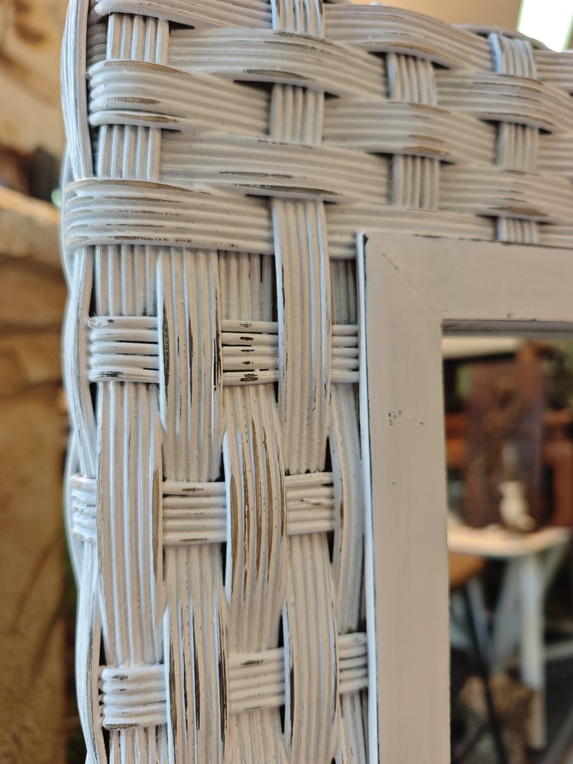 Espejo de ratán natural blanco estilo shabby chic