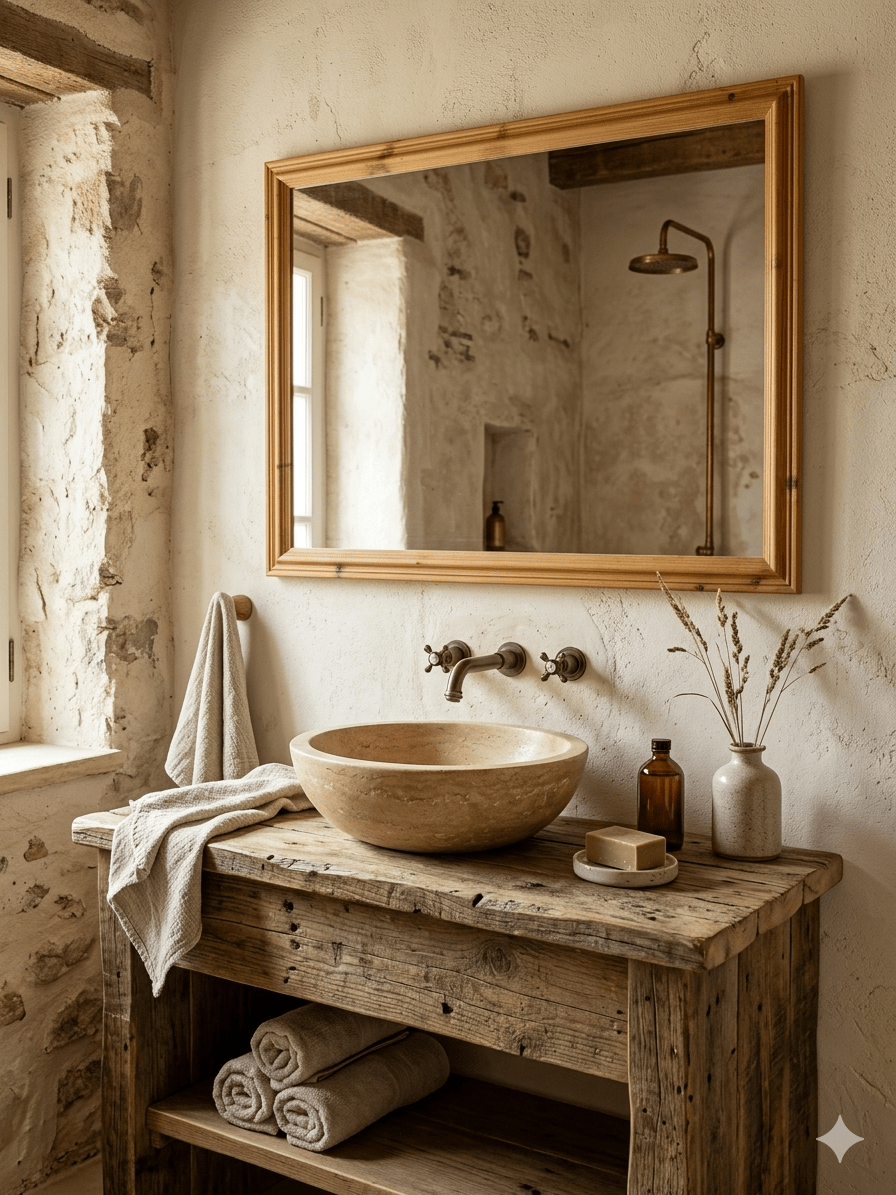 El uso de la madera natural en la decoración ha sido, históricamente, el recurso predilecto para transformar estancias frías en hogares acogedores. Este espejo, con su moldura clásica escalonada, rinde homenaje al estilo Farmhouse Chic y al Minimalismo Cálido, tendencias que buscan la honestidad de los materiales nobles sin artificios.