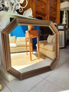 – Diseño Geométrico con Elegancia Retro de latónEspejo decorativo con marco octagonal de líneas marcadas y acabado texturizado. Su forma geométrica y estilo retro lo convierten en una pieza llamativa que aporta profundidad y carácter a cualquier ambiente.