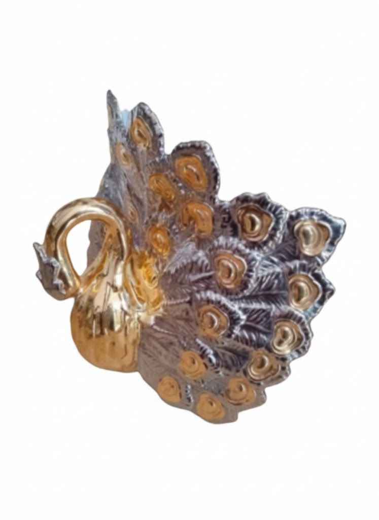 Jarrón de porcelana San Marcos con diseño de pavo real en relieve. Medidas: 36 cm ancho × 37 cm alto. Estado: bien conservado.