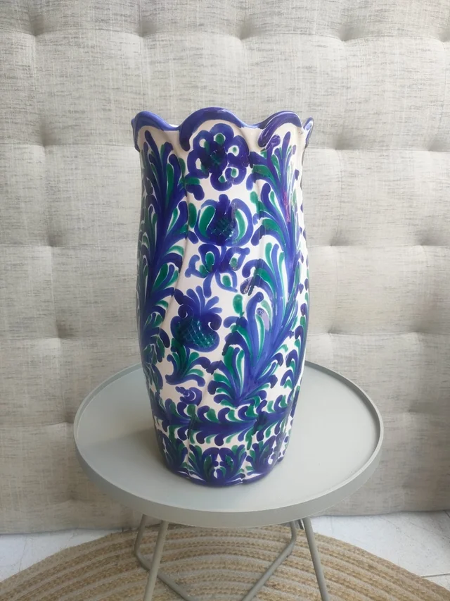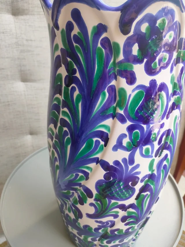 Ideal como pieza central en aparadores, mesas auxiliares o estanterías, este jarrón combina perfectamente con estilos clásicos, bohemios o eclécticos. Su acabado brillante y su paleta cromática lo convierten en un objeto decorativo que aporta frescura, color y refinamiento al ambiente.