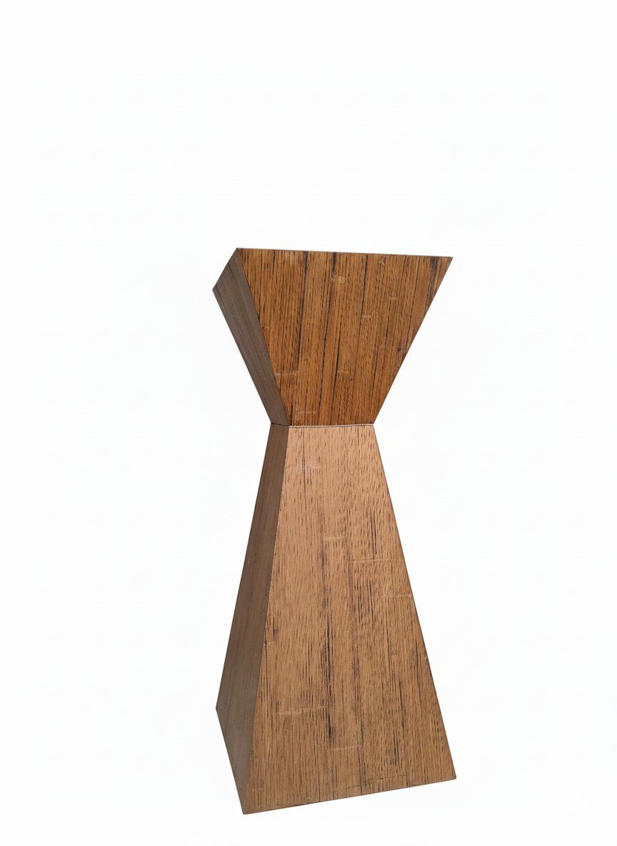 Este jarrón de Haití, con diseño geométrico en forma de reloj de arena, es una pieza decorativa de gran formato que fusiona la tradición artesanal con una estética contemporánea. Su estructura facetada, elaborada en madera natural con vetas verticales, lo convierte en una escultura funcional que aporta presencia y sofisticación a cualquier ambiente.