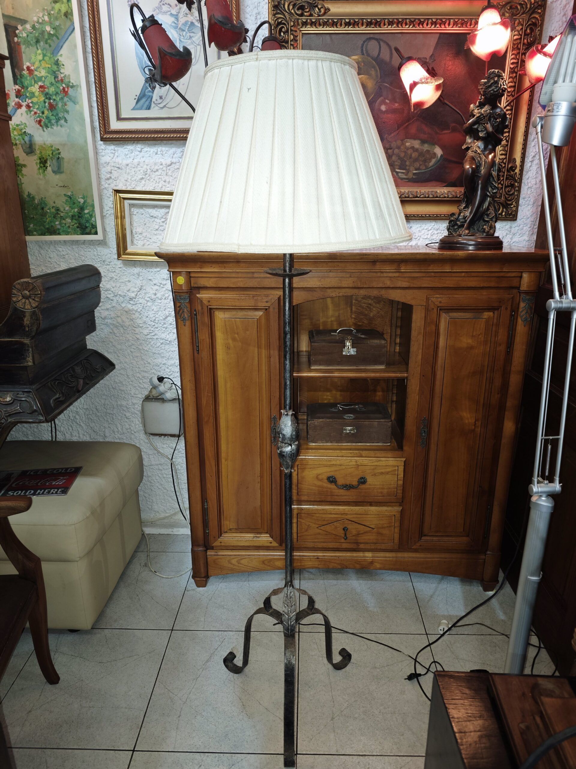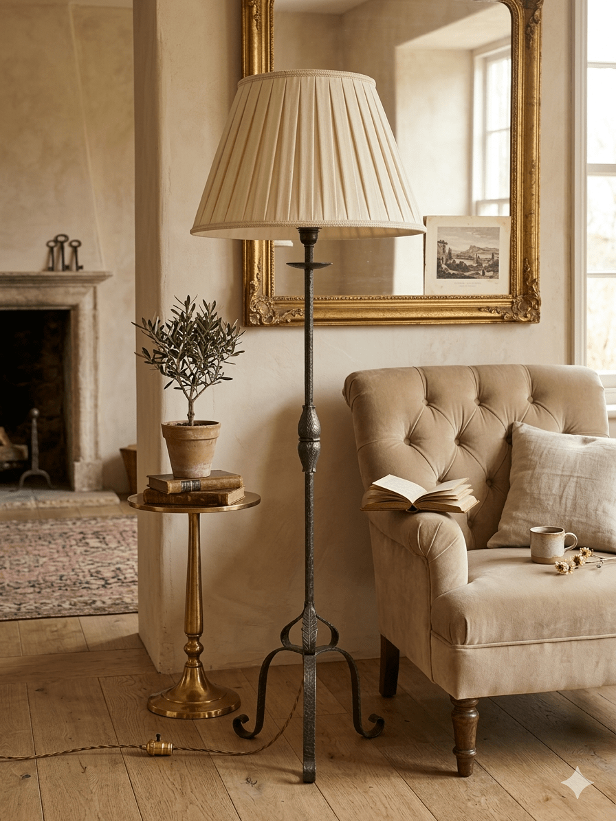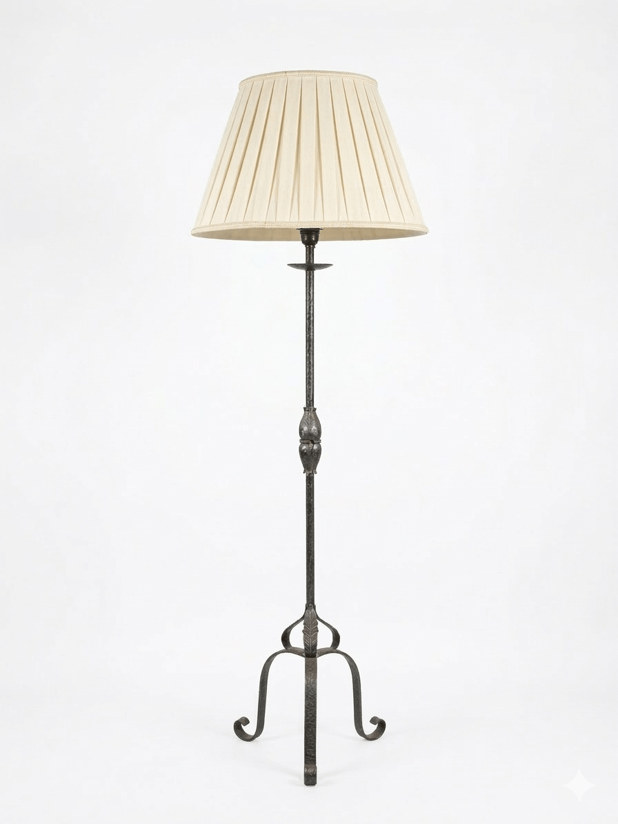 Lámpara de Pie Vintage en Hierro Forjado con Tulipa Plisada