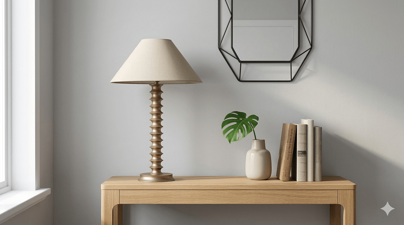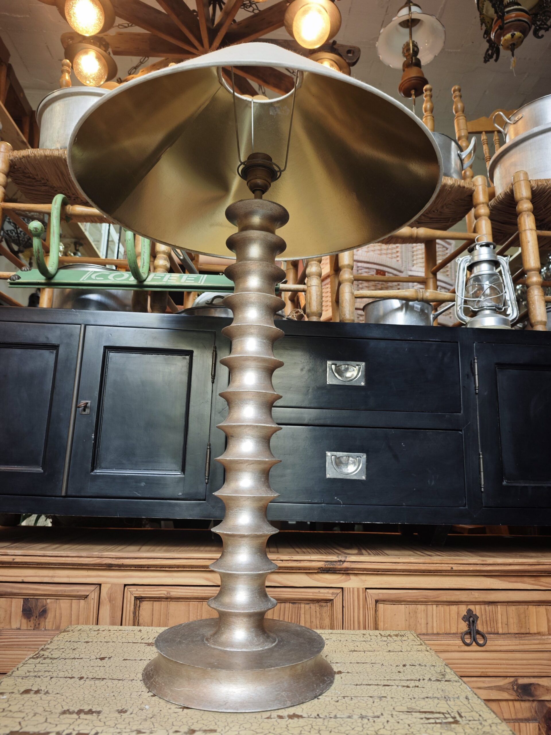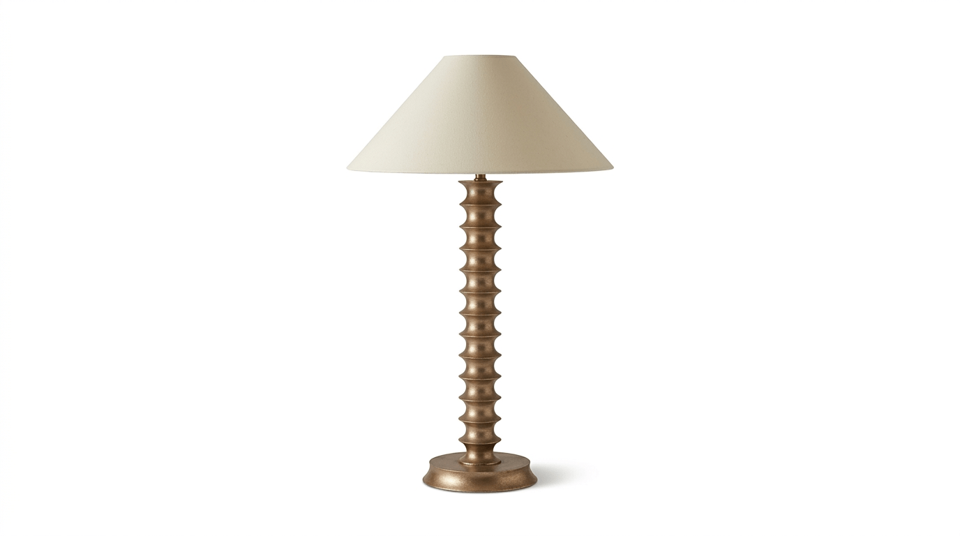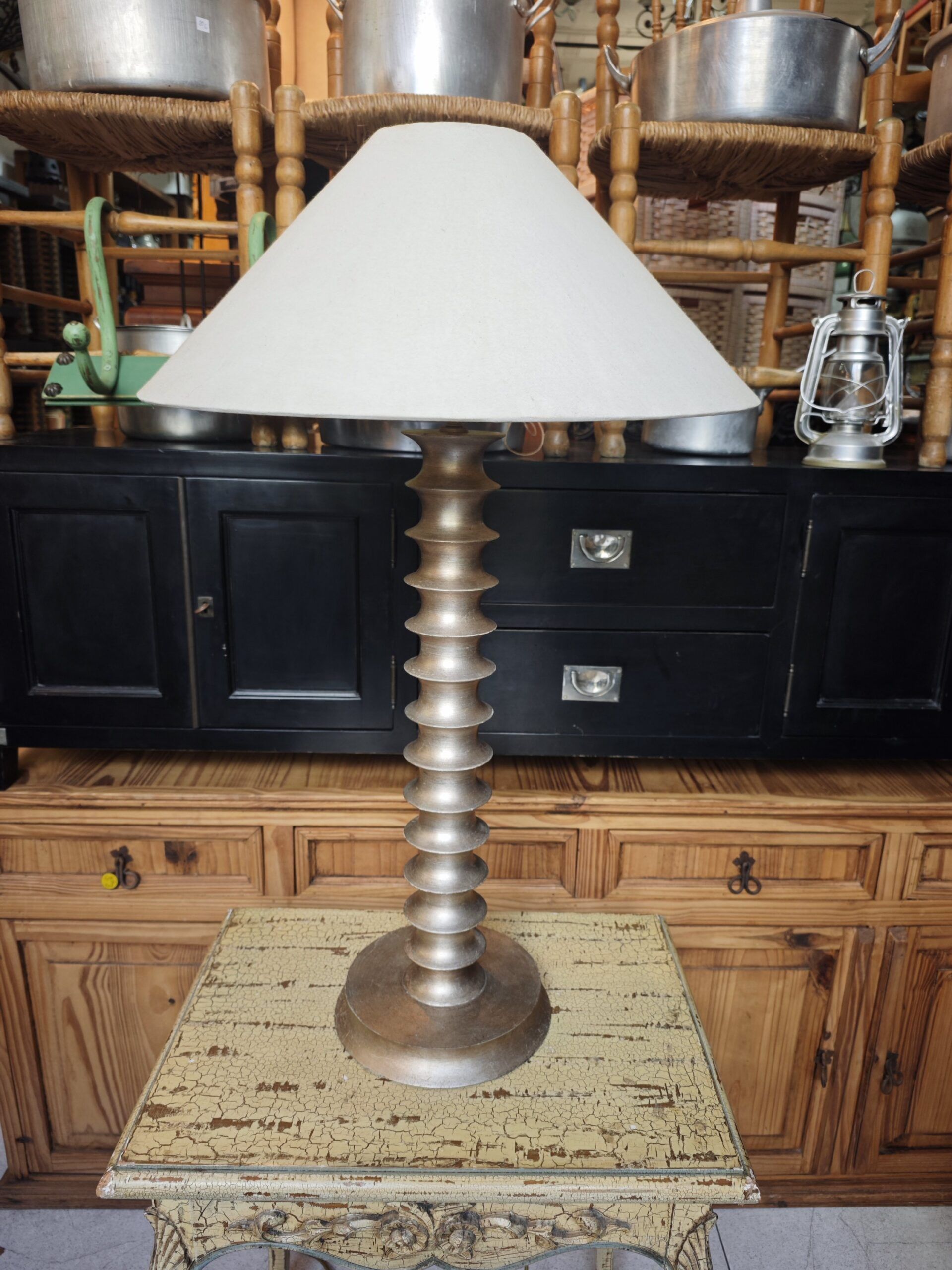 Esta exclusiva lámpara de sobremesa alta Porta Romana en madera tallada color bronce y pantalla – 90 cm destaca por su imponente presencia y su calidad artesanal. Fabricada con una columna de madera meticulosamente tallada en forma de anillos y acabada en un sofisticado tono bronce texturizado, esta pieza refleja la luz de manera cálida y envolvente. Incluye una pantalla cónica de alta calidad que equilibra sus 90 cm de altura, siendo perfecta para espacios amplios que requieren una iluminación con carácter.