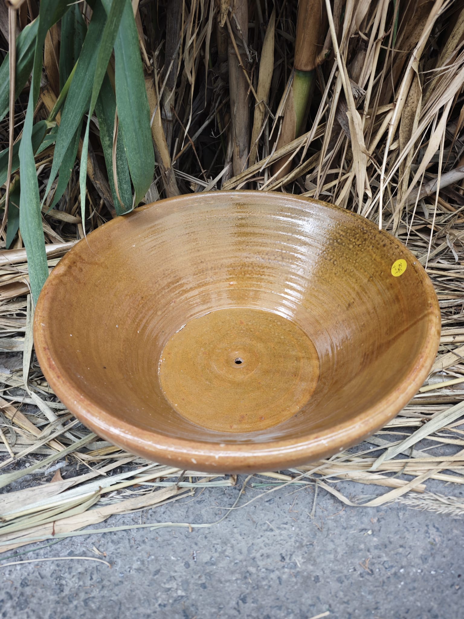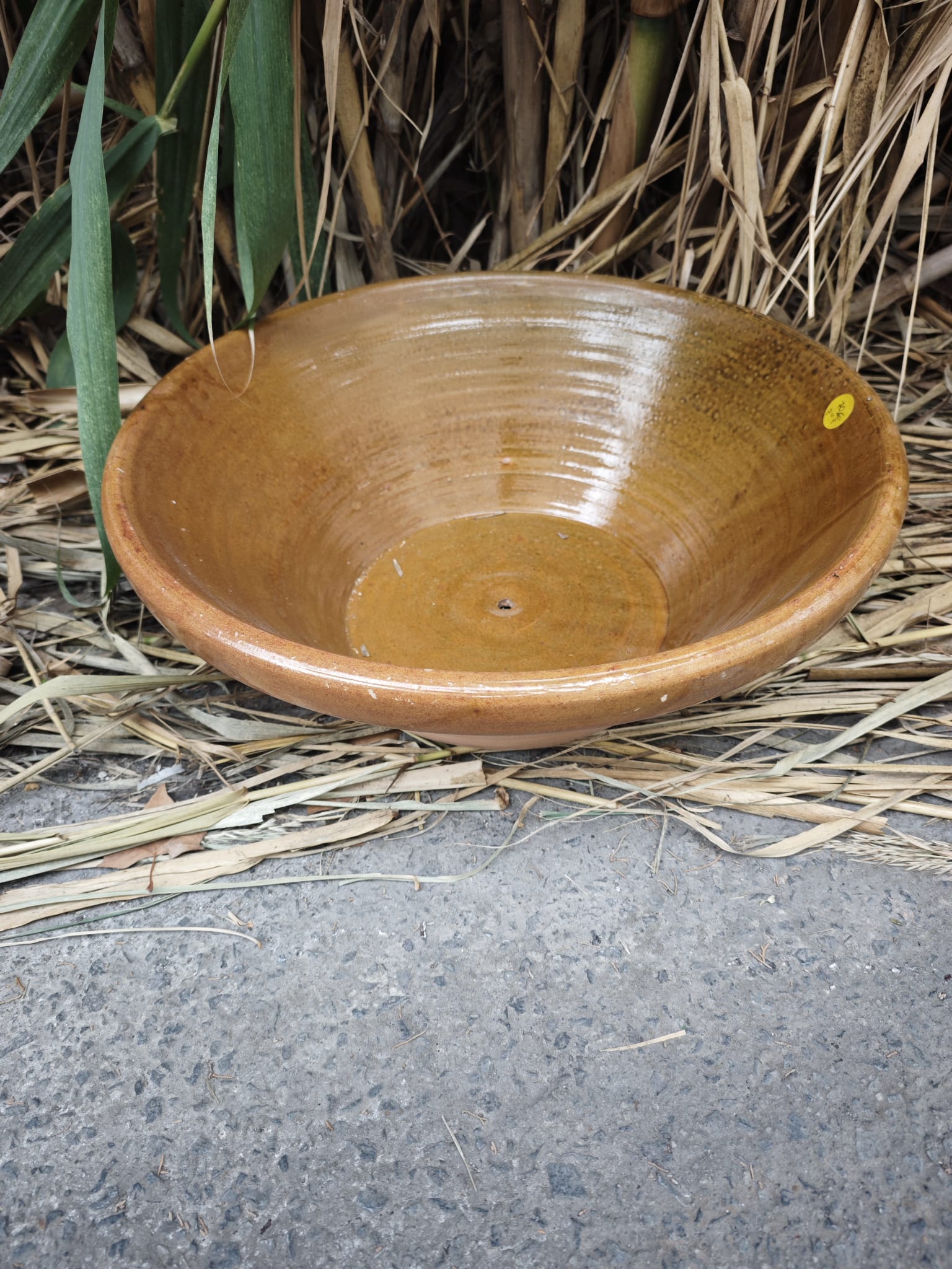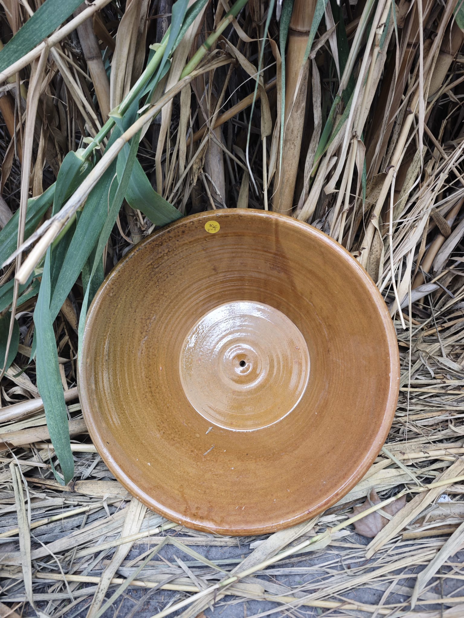 Este lebrillo cerámico artesanal es una pieza decorativa de gran presencia, ideal para embellecer jardines, patios, terrazas o interiores con estilo rústico o mediterráneo. Fabricado en cerámica esmaltada de alta calidad, presenta un acabado brillante en tonos marrón tierra que resalta sus formas redondeadas y detalles concéntricos.