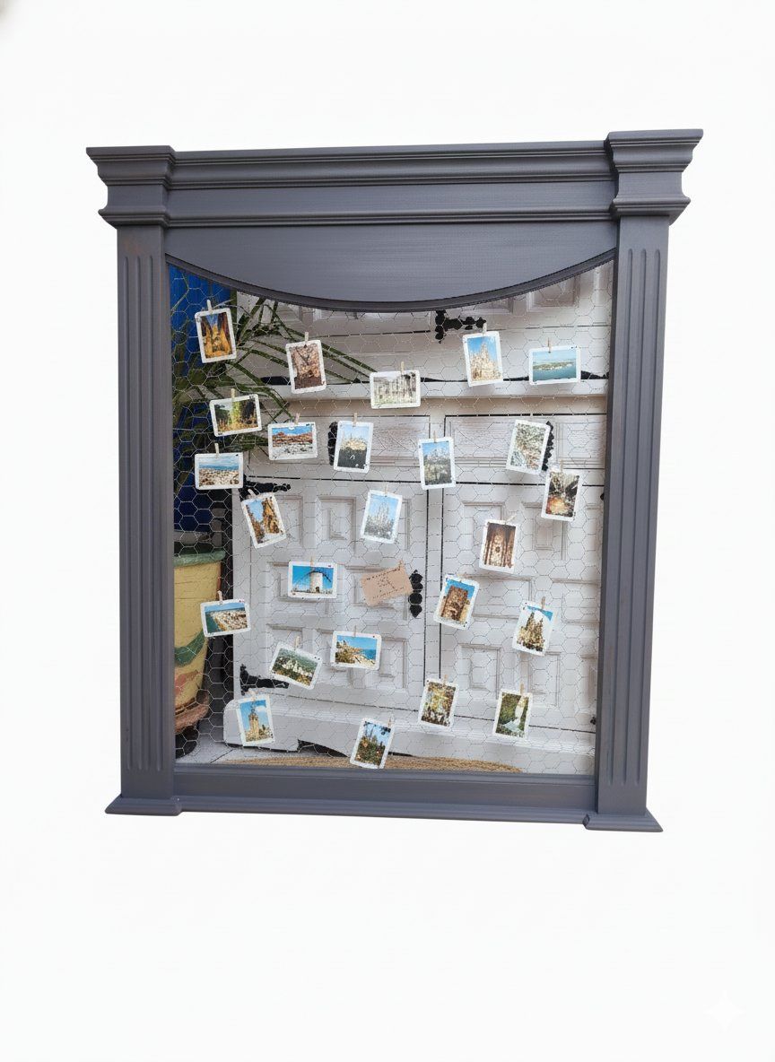 – Diseño: Marco arquitectónico con columnas y remate superior clásico