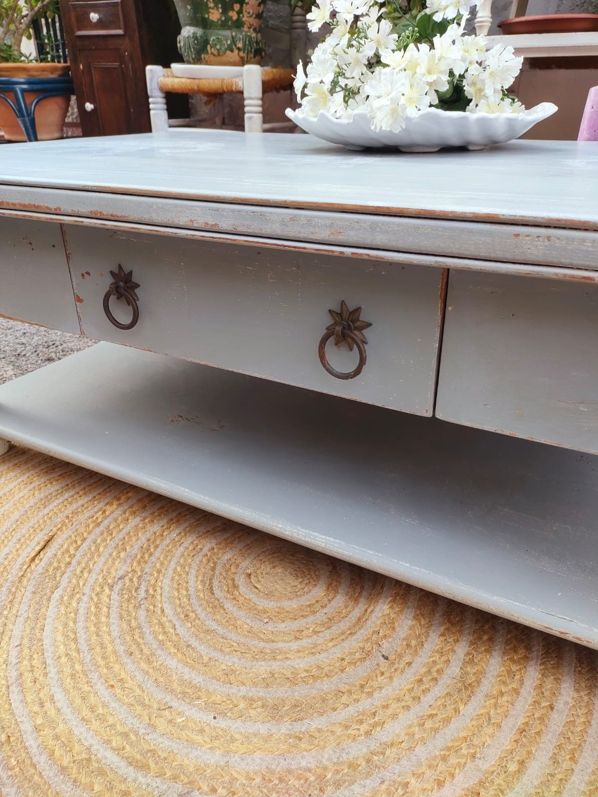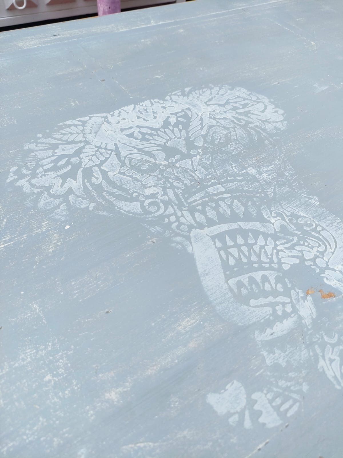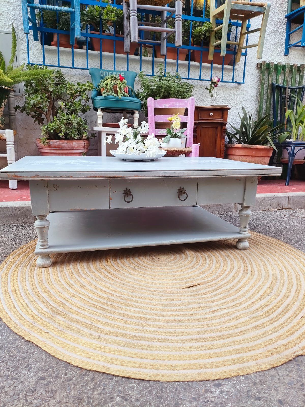 Una pieza única que combina arte, funcionalidad y estilo vintage. Esta mesa baja de madera pintada a mano destaca por su diseño encantador de elefantes blancos , ideal para aportar personalidad a cualquier espacio.