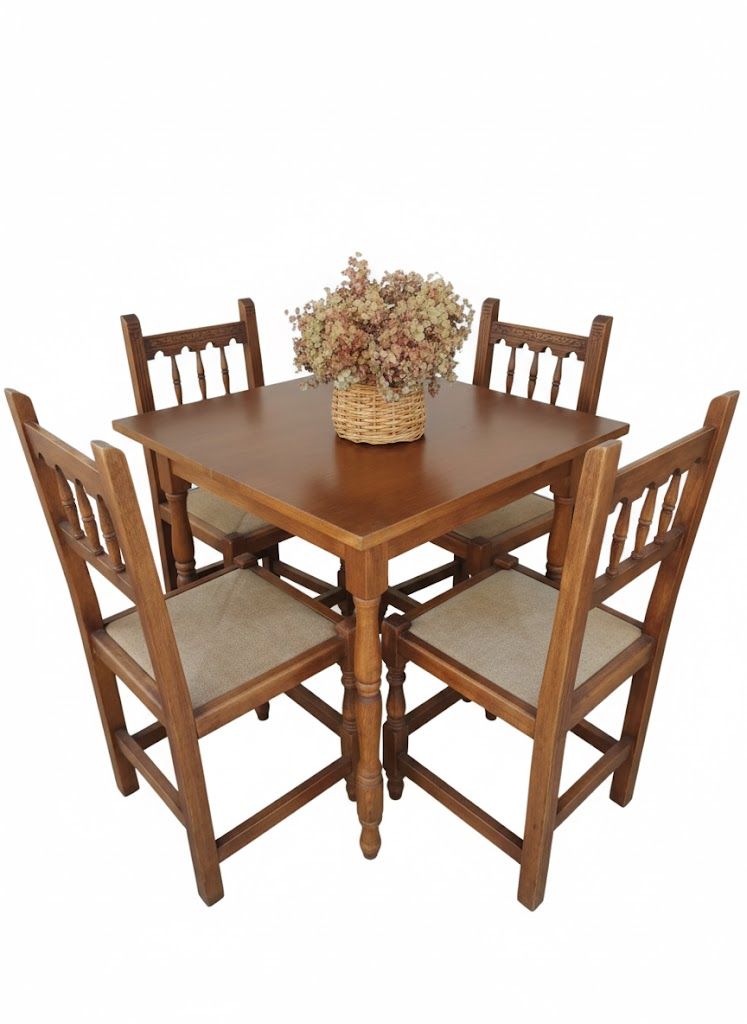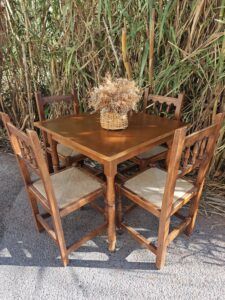Mesa de madera cuadrada de madera natural. Medidas: 80×80 cm. Altura: 75 cm.