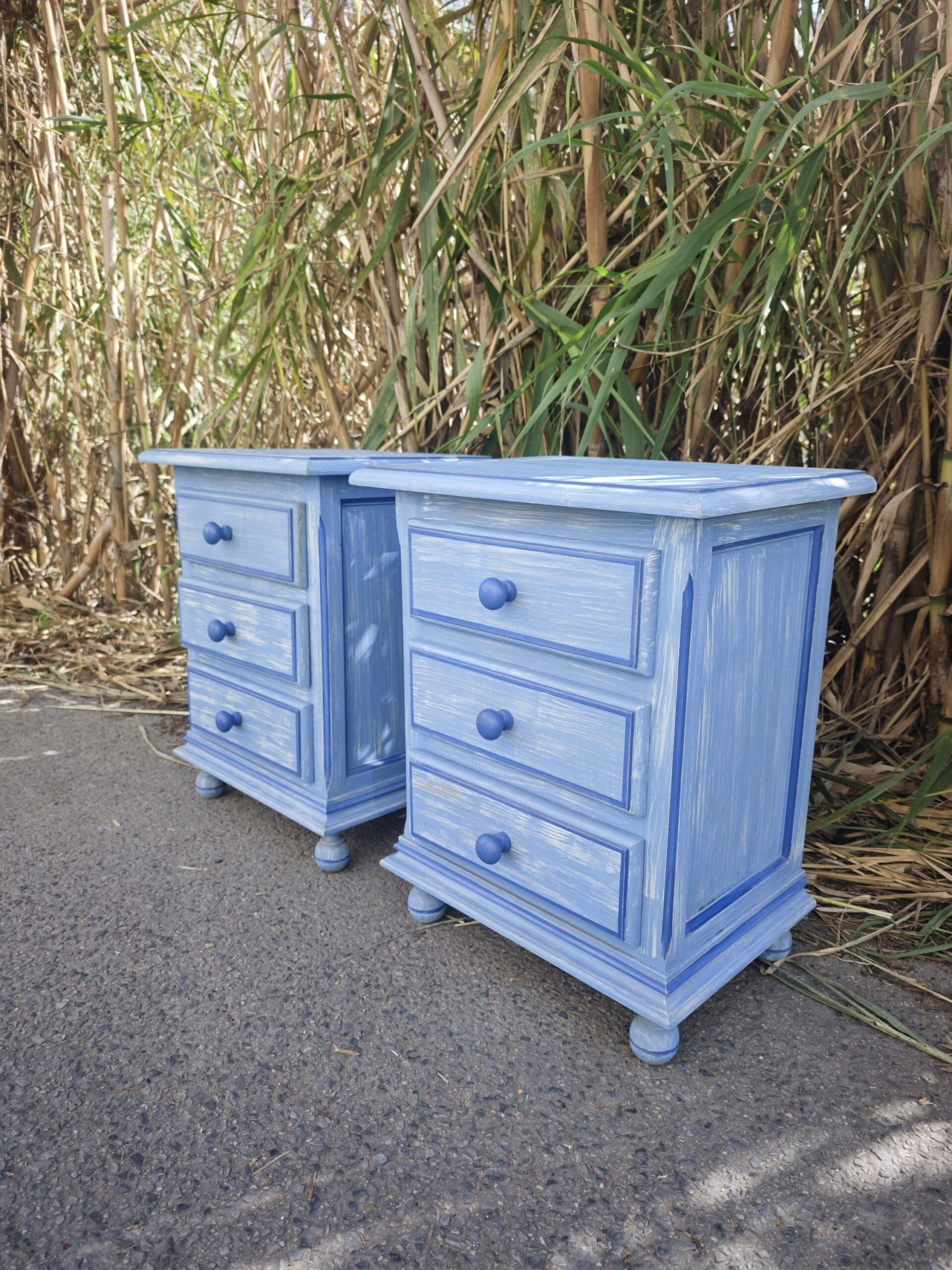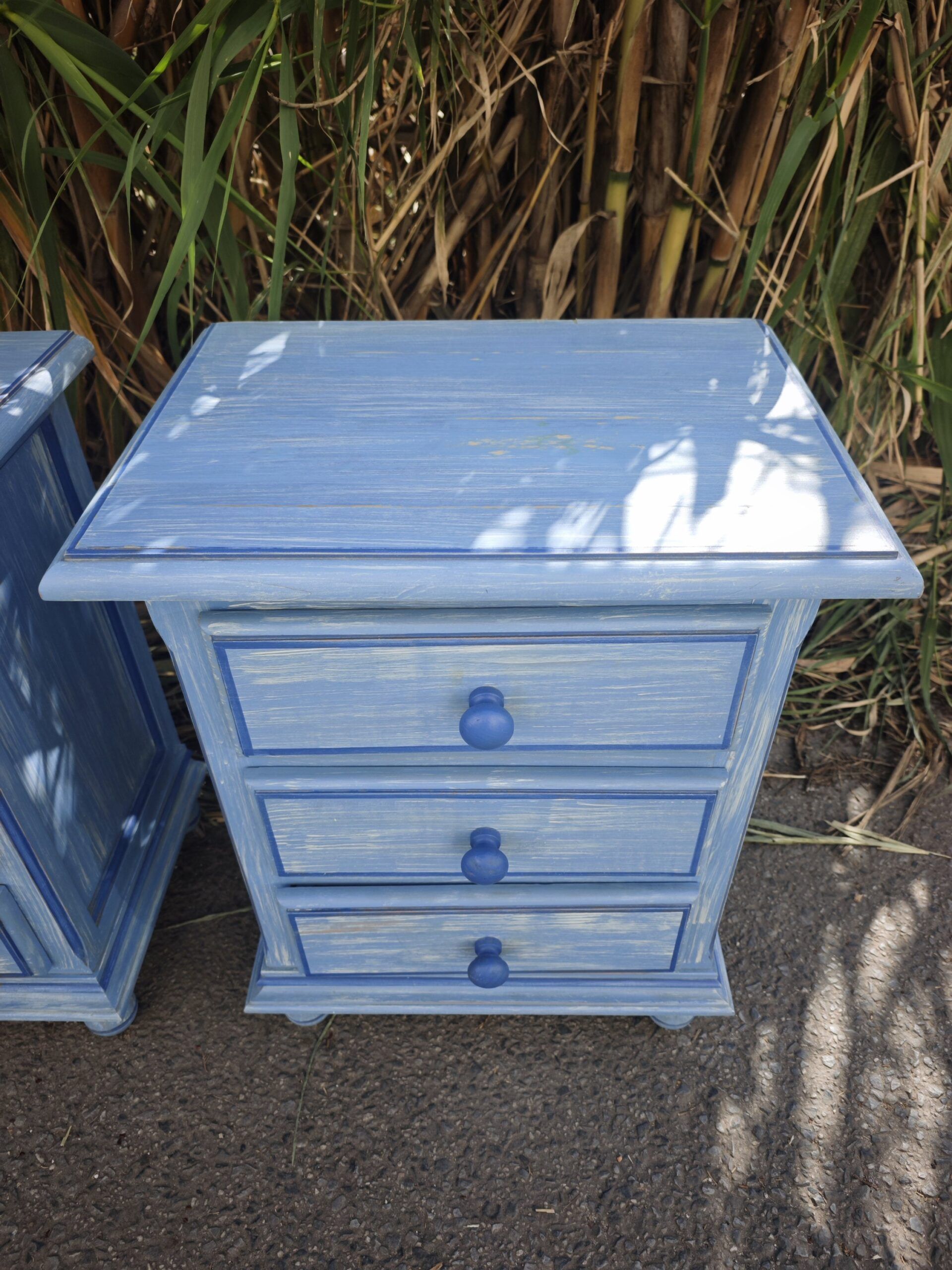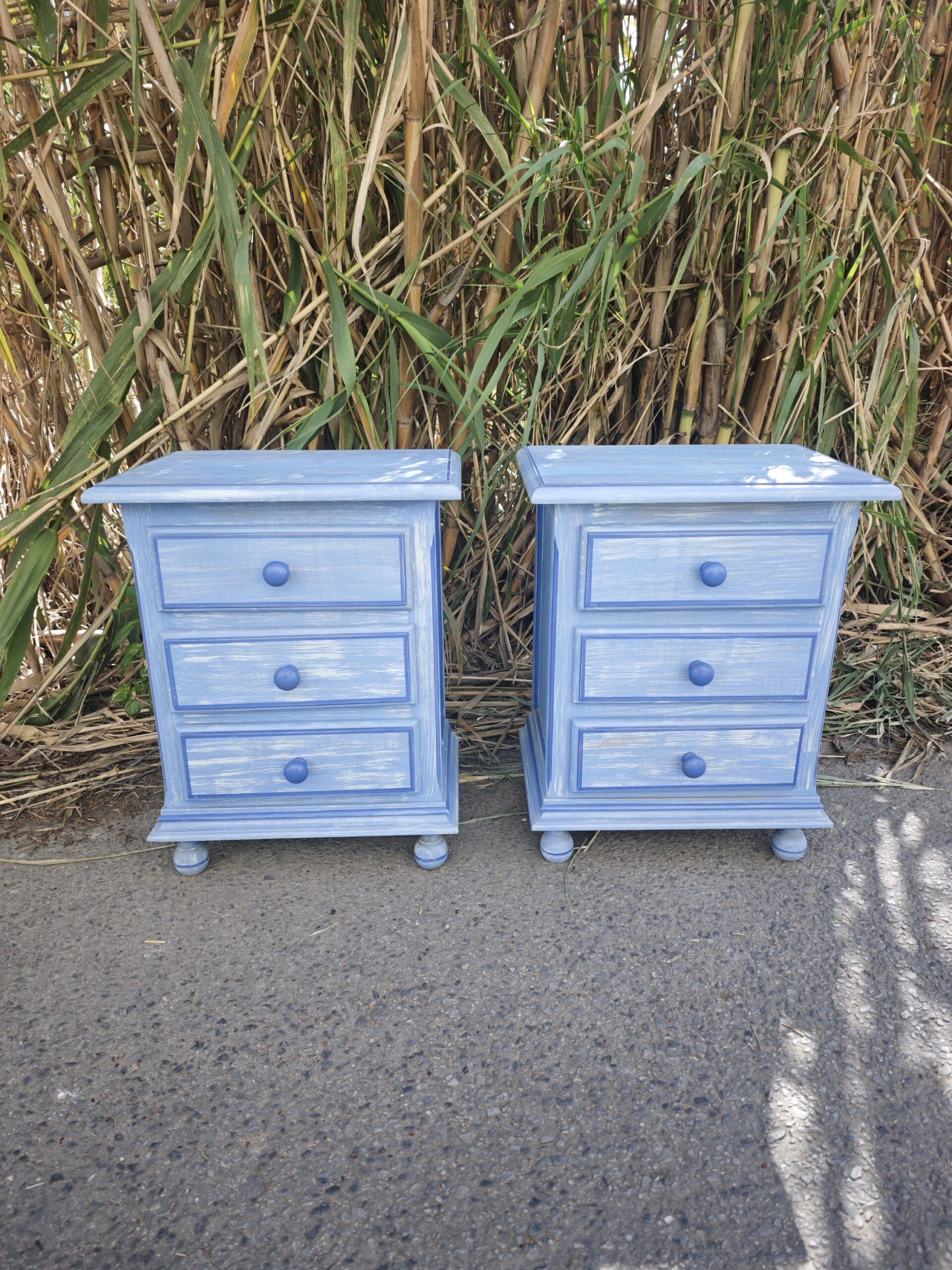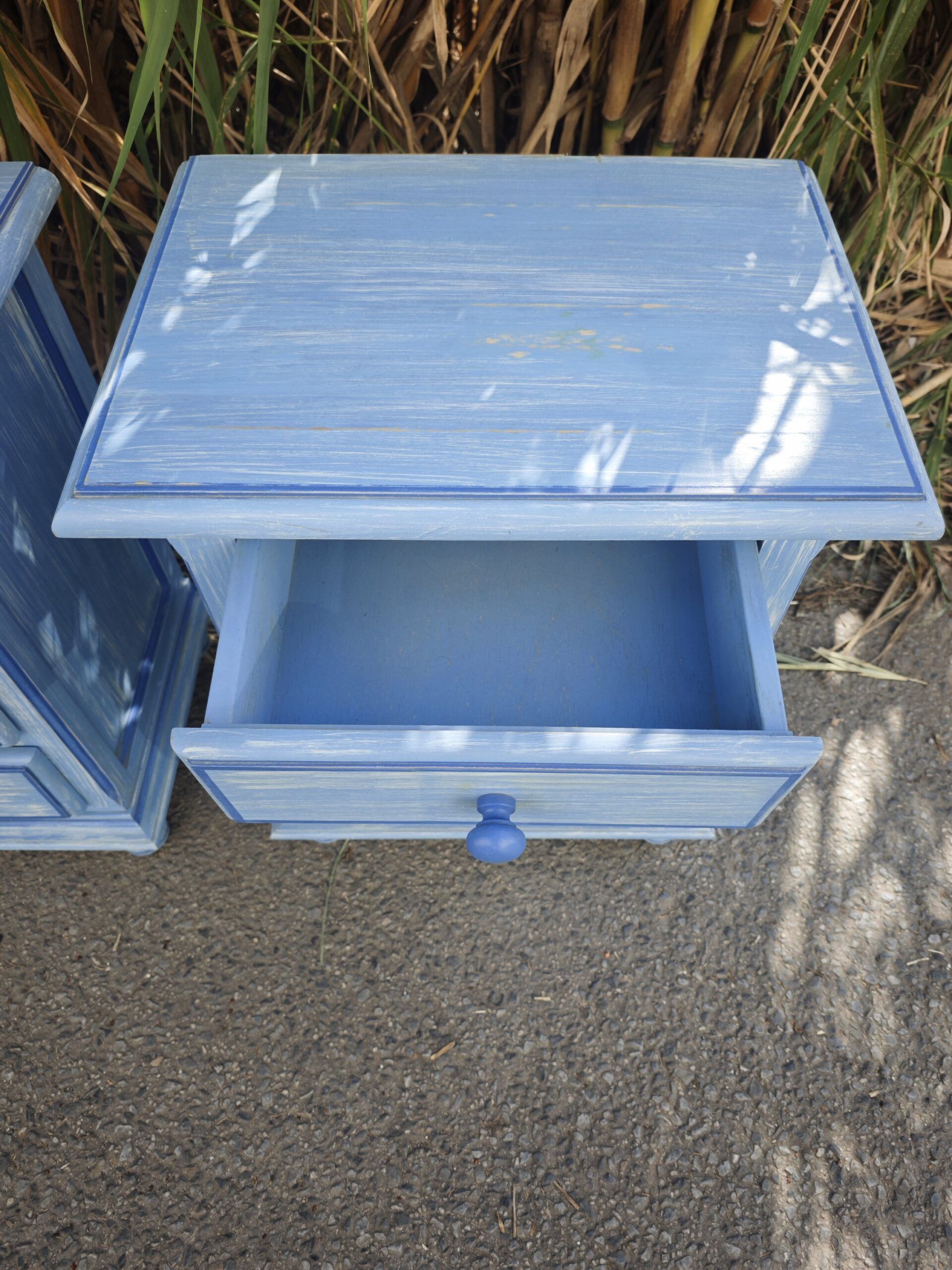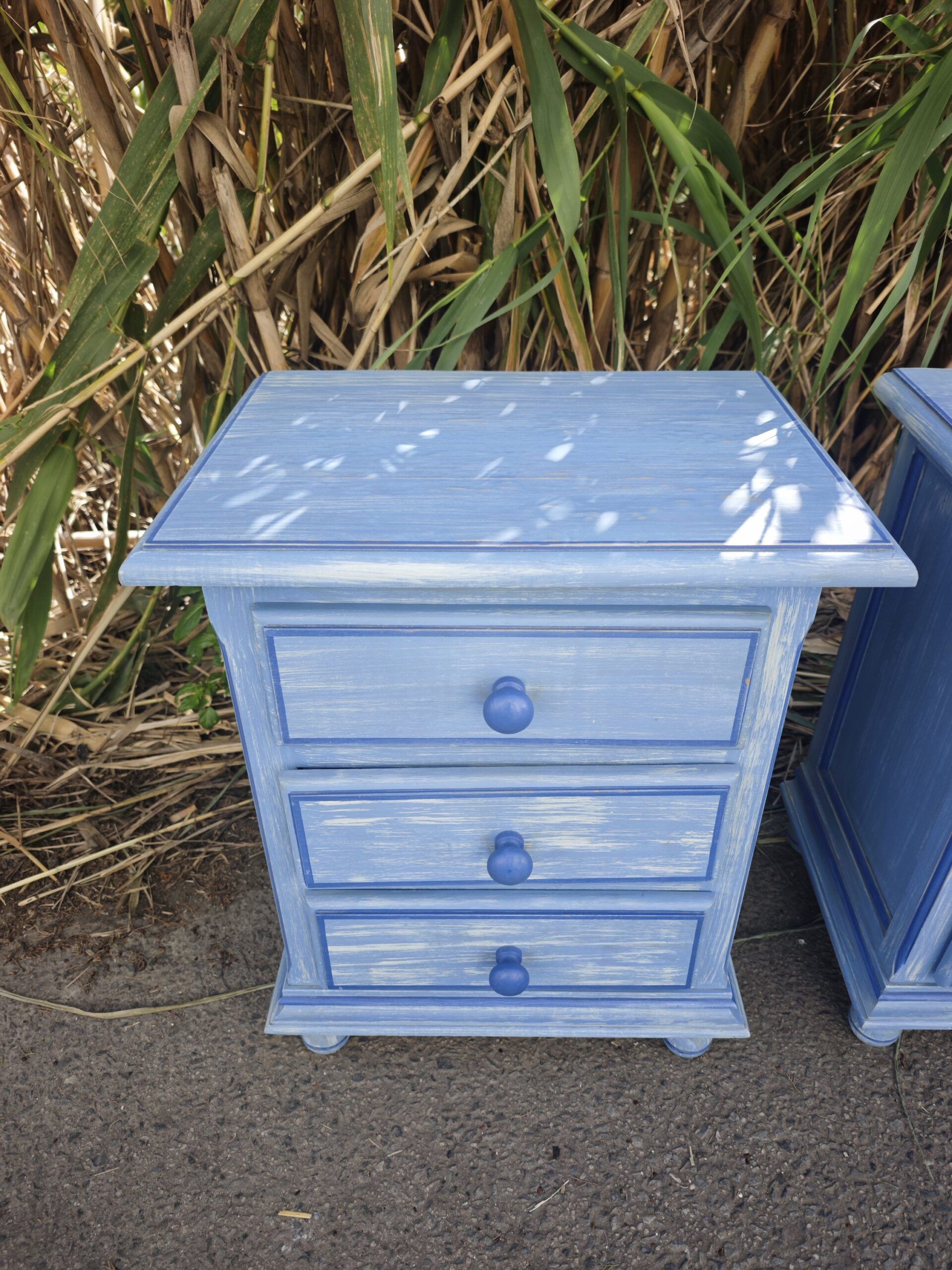 Mesitas de Noche Shabby Chic Madera Azul Pastel