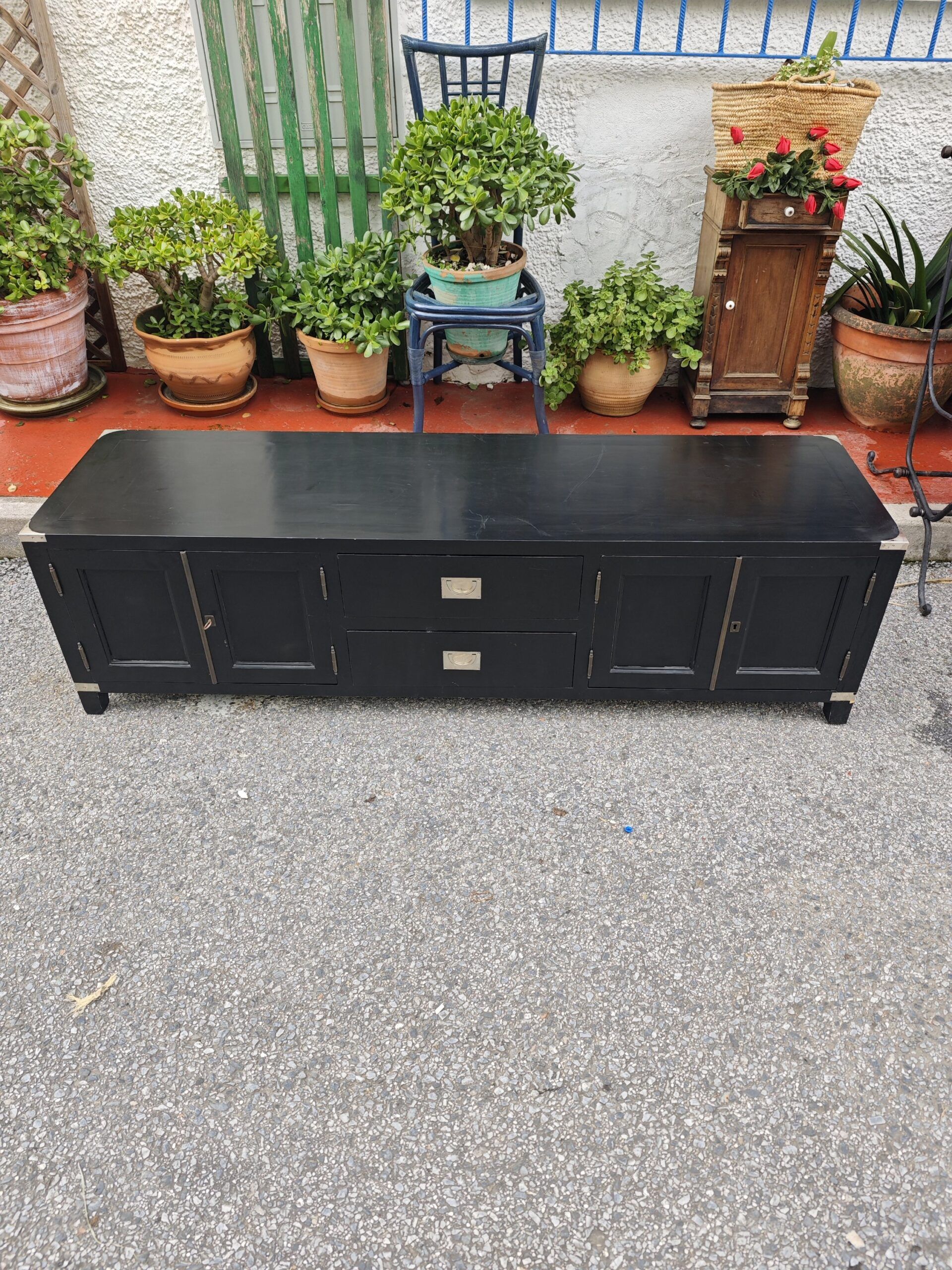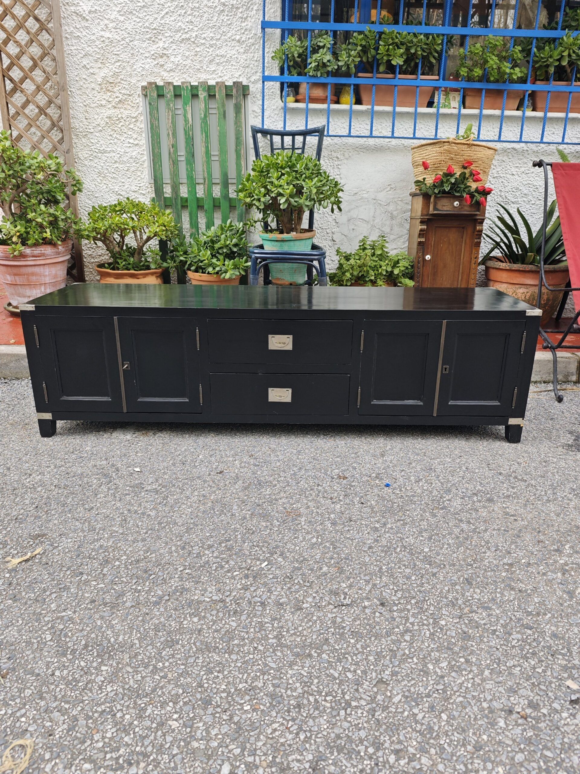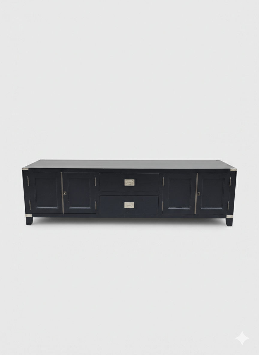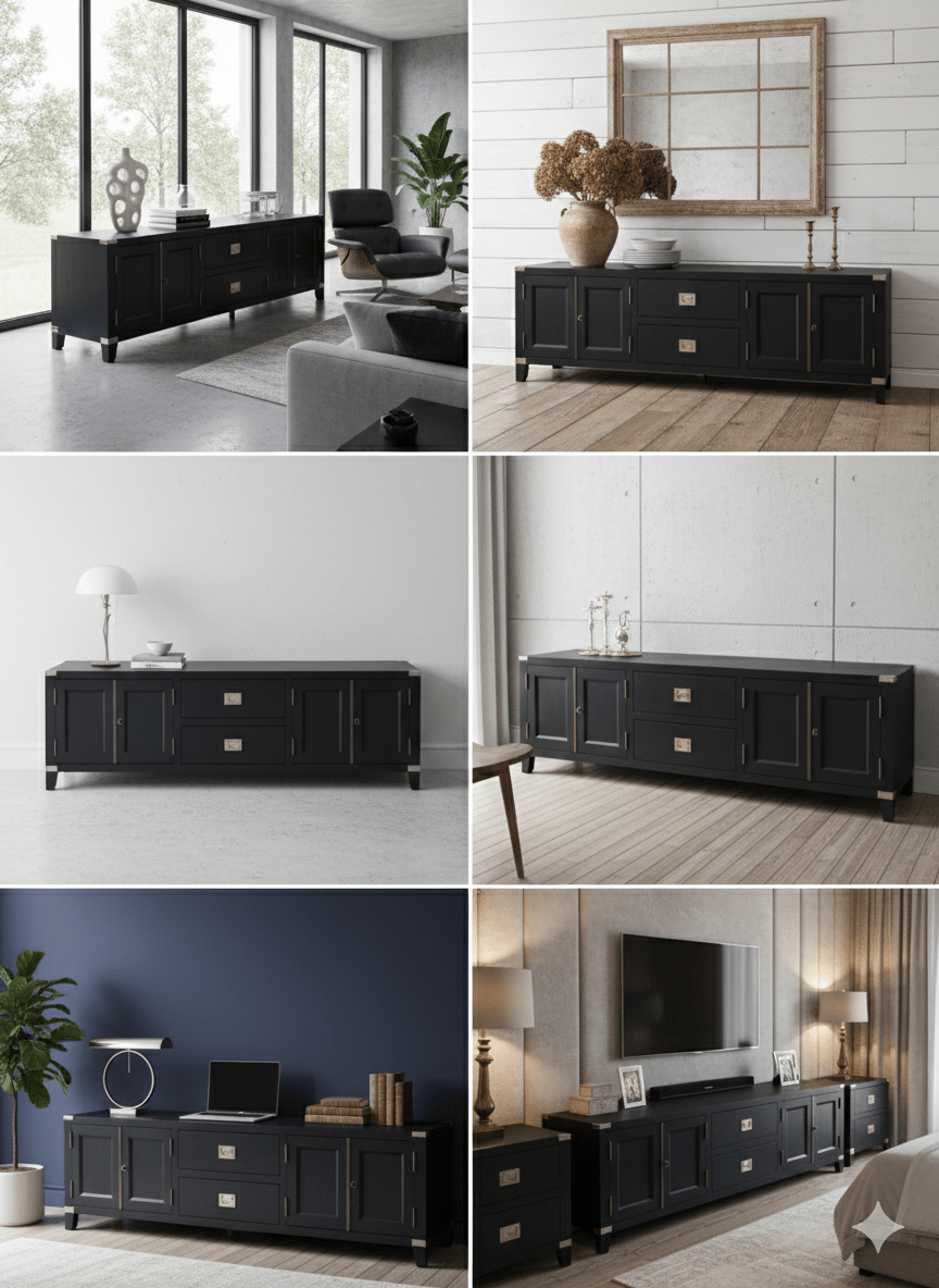 Descubre este elegante mueble bajo de salón de 180 cm de ancho, 50 cm de alto y 50 cm de fondo, ideal para complementar espacios amplios como salones, comedores o zonas de estar modernas. Fabricado en madera de alta calidad con acabado oscuro, este aparador combina funcionalidad con un diseño atemporal que encaja tanto en estilos contemporáneos como clásicos. Perfecto como soporte para televisión, sistema multimedia o decoración, dispone de amplio espacio de almacenamiento detrás de puertas y cajones, manteniendo tus objetos organizados y fuera de la vista. Este tipo de mueble, comparado con otros muebles largos similares en tiendas de diseño escandinavo y contemporáneo, suele valorarse entre 1 000 € y 2 100 € en el mercado actual, lo que sitúa esta pieza como una opción competitiva para clientes que buscan diseño y resistencia.