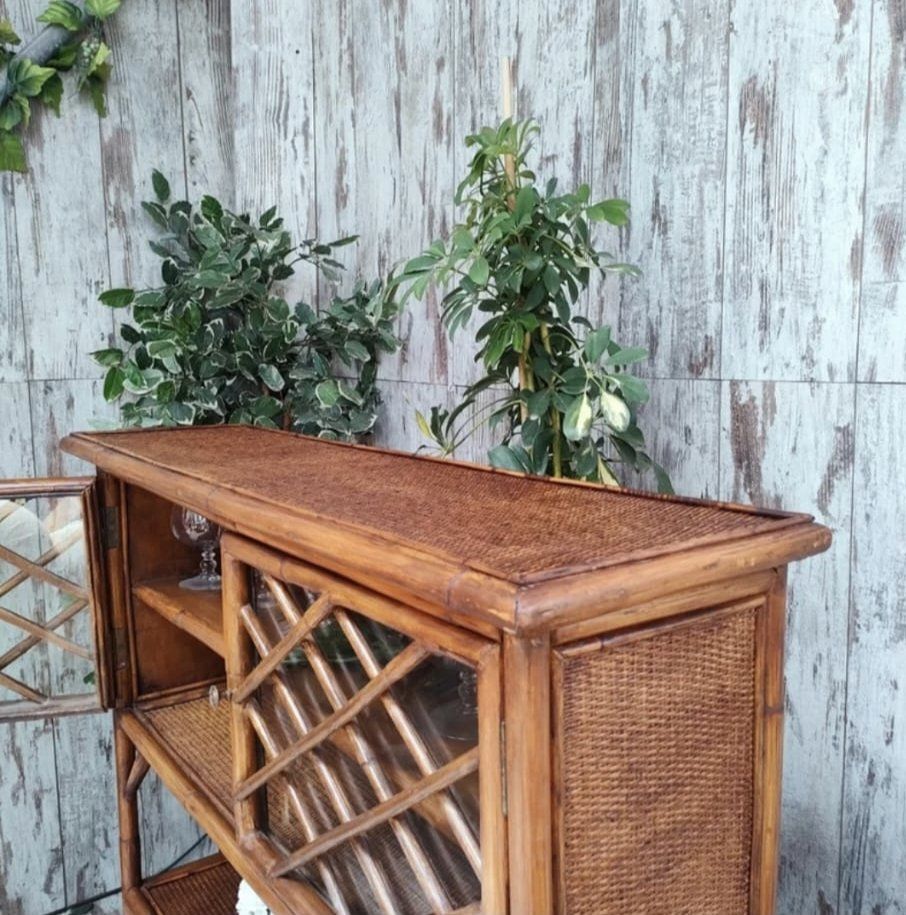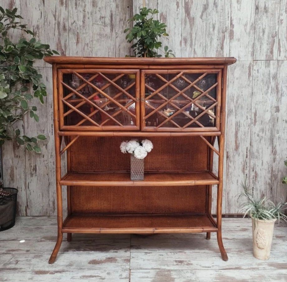 Este elegante mueble auxiliar de bambú combina funcionalidad y diseño rústico, ideal para salones, comedores, recibidores o espacios comerciales. Con una estructura robusta y acabados cálidos, ofrece una solución decorativa y práctica para organizar objetos, vajilla, textiles o elementos decorativos.