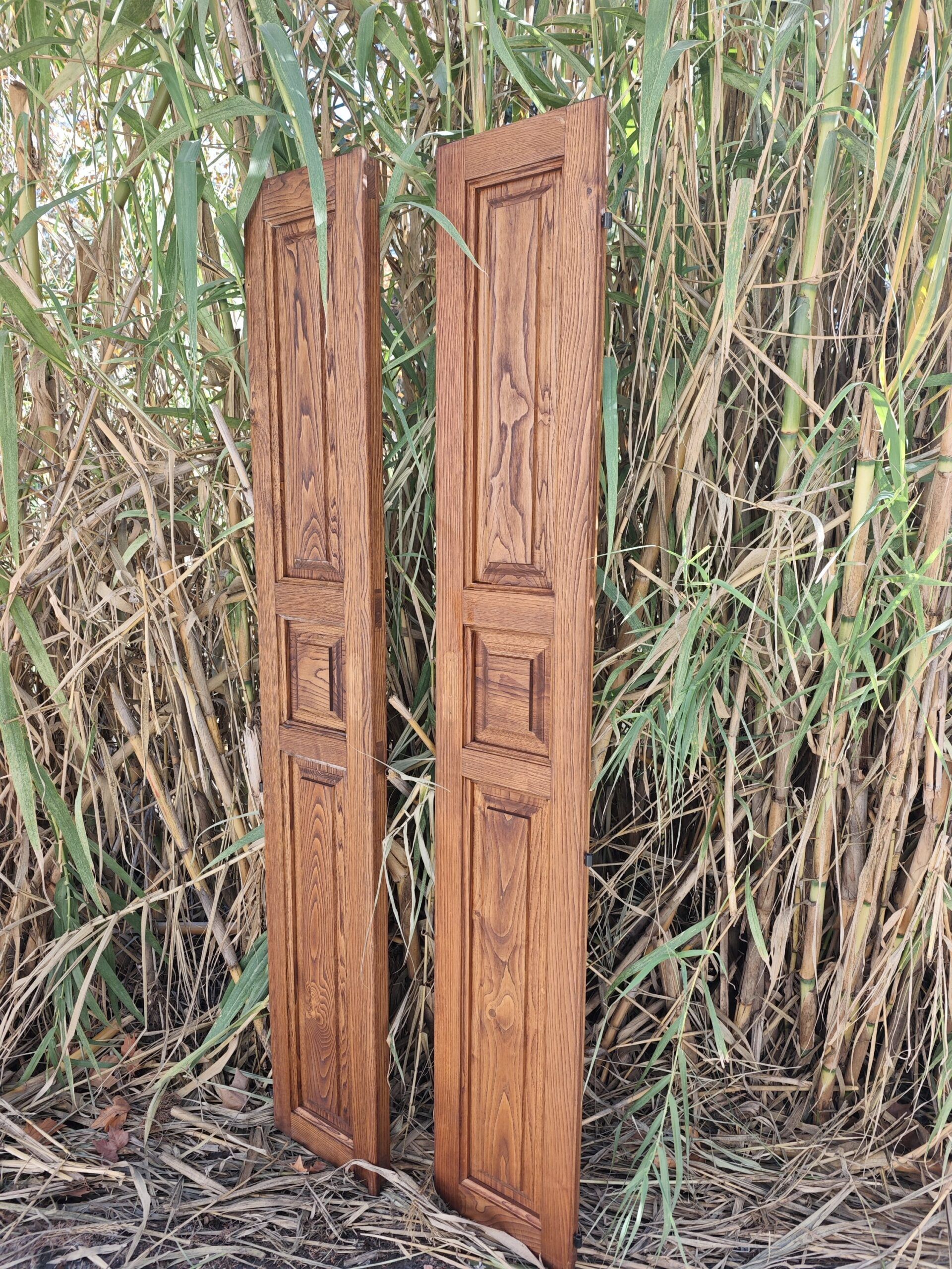 Set de 2 puertas de madera maciza con diseño clásico de cuarterones. Ideales para contraventanas, puertas auxiliares o decoración interior.