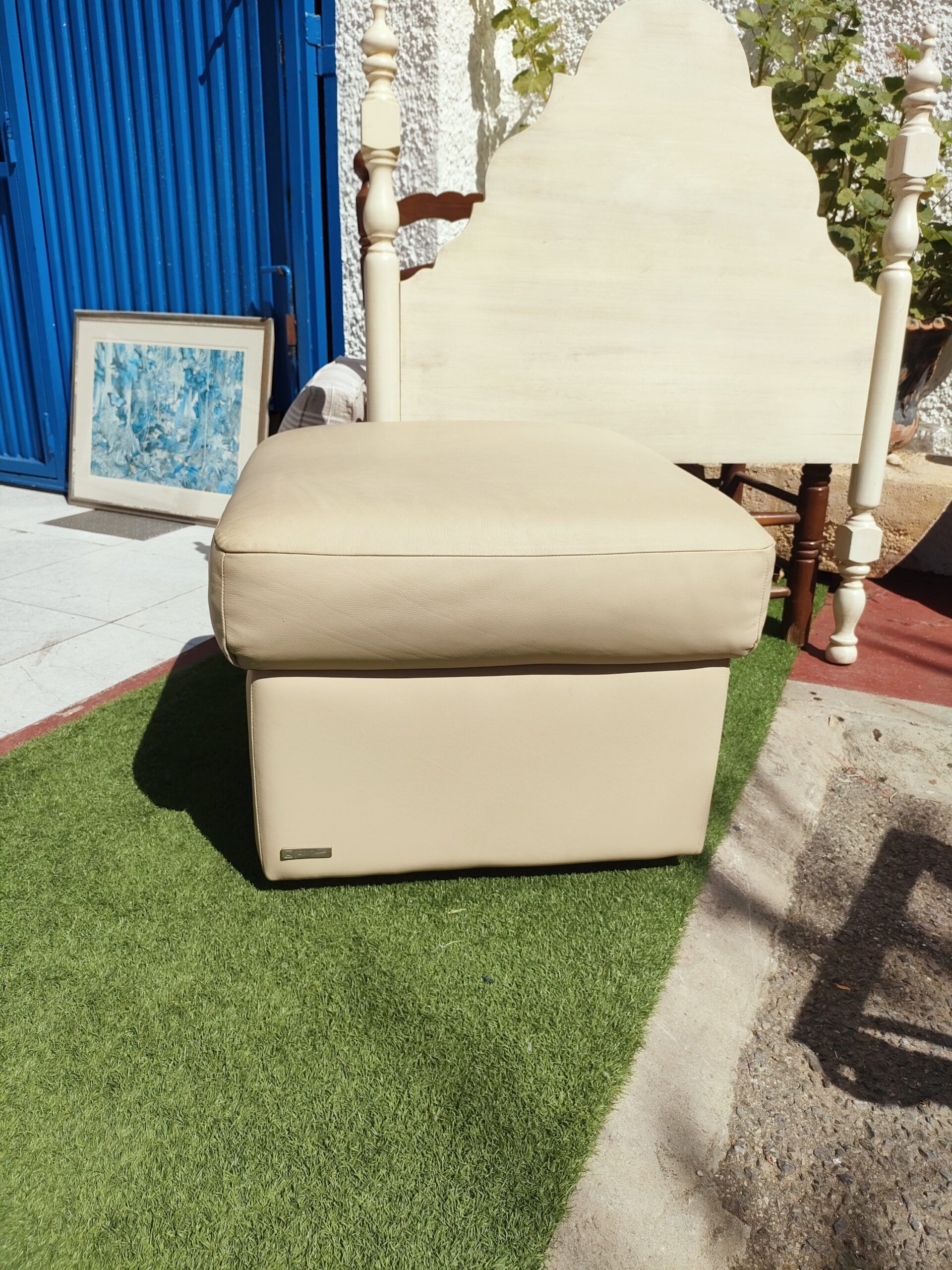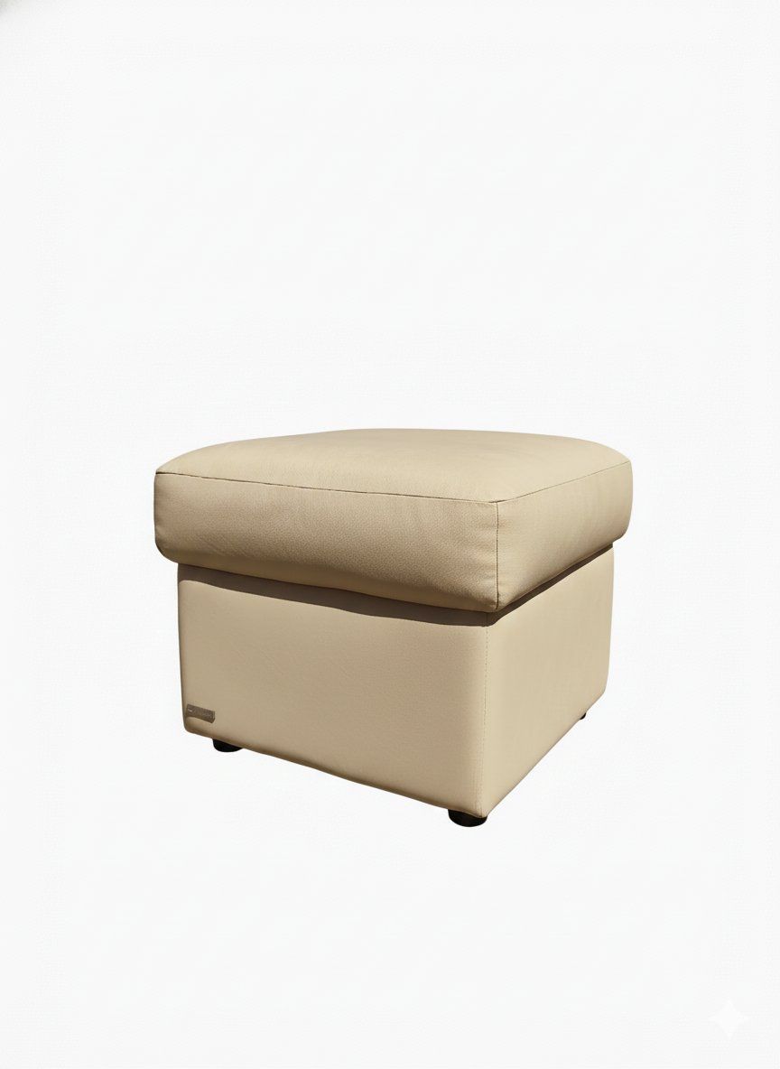 Puf polipiel en tono beige, con base firme y patas discretas. Su diseño limpio y acolchado lo convierte en una pieza versátil: puede funcionar como asiento extra, reposapiés o incluso como mesa auxiliar con una bandeja encima. El acabado en piel sintética le da un toque moderno y fácil de mantener, ideal para salones, dormitorios o espacios comerciales que buscan comodidad sin renunciar al estilo.
