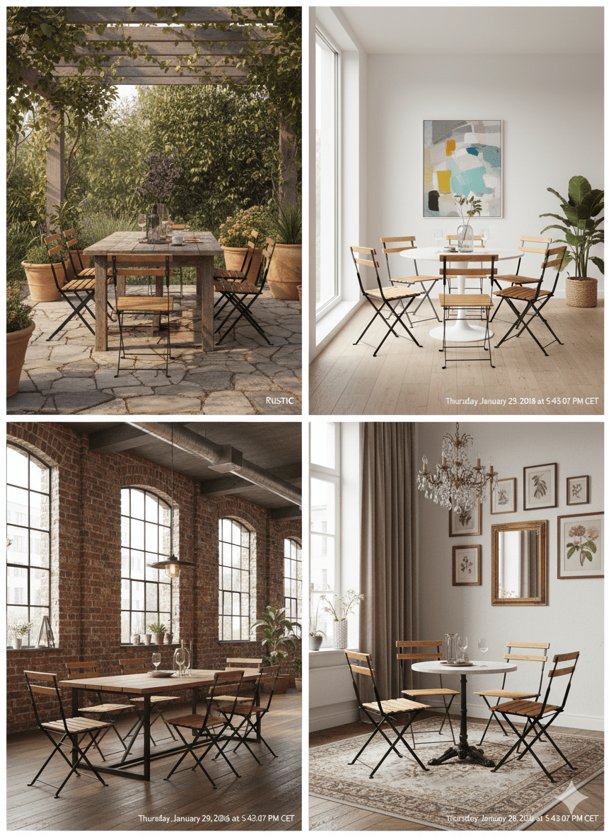 Set de 4 Sillas Plegables de Estilo Bistró Francés