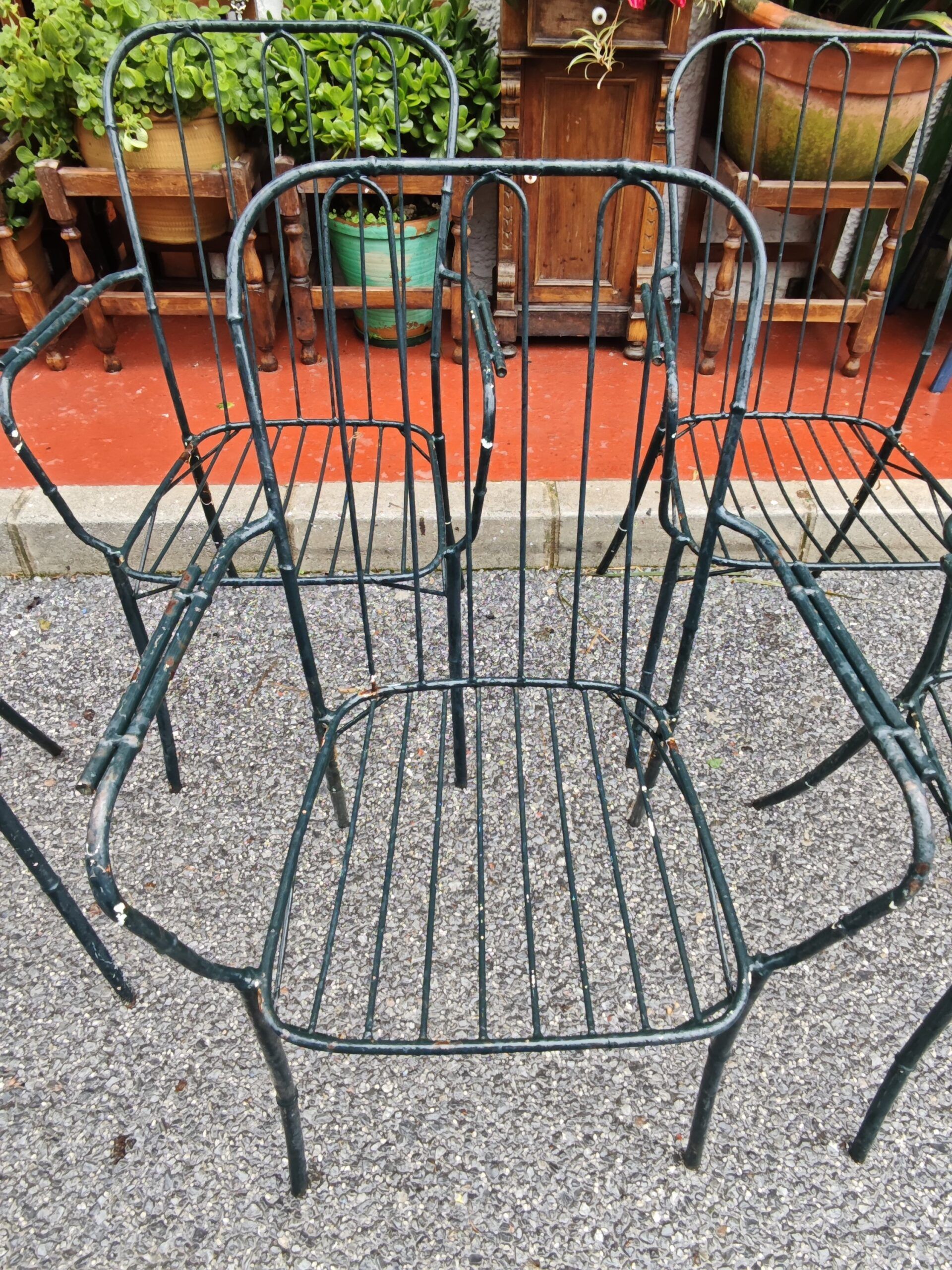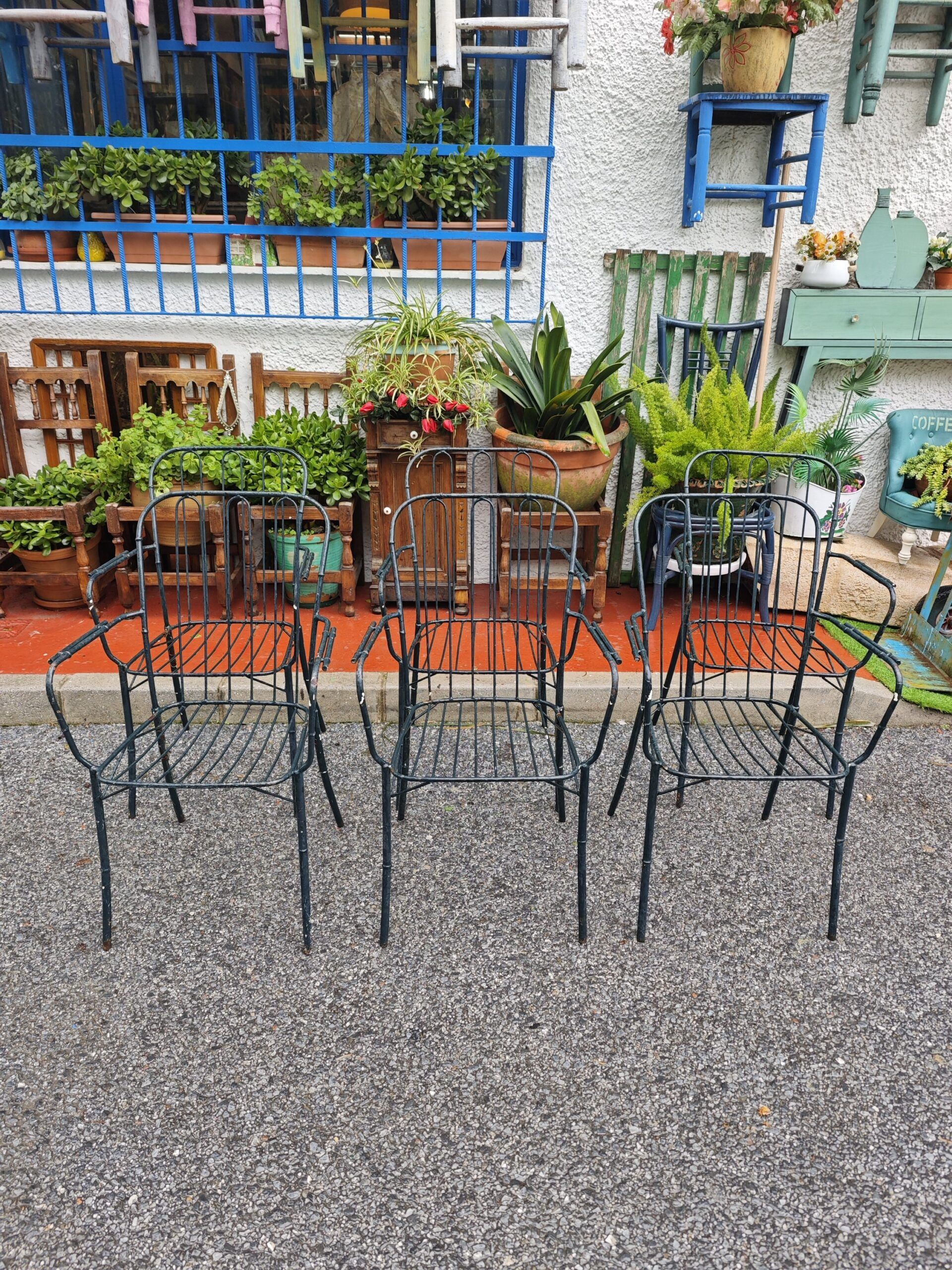 Lote de 6 sillas metálicas imitación bambú para jardín o terraza.