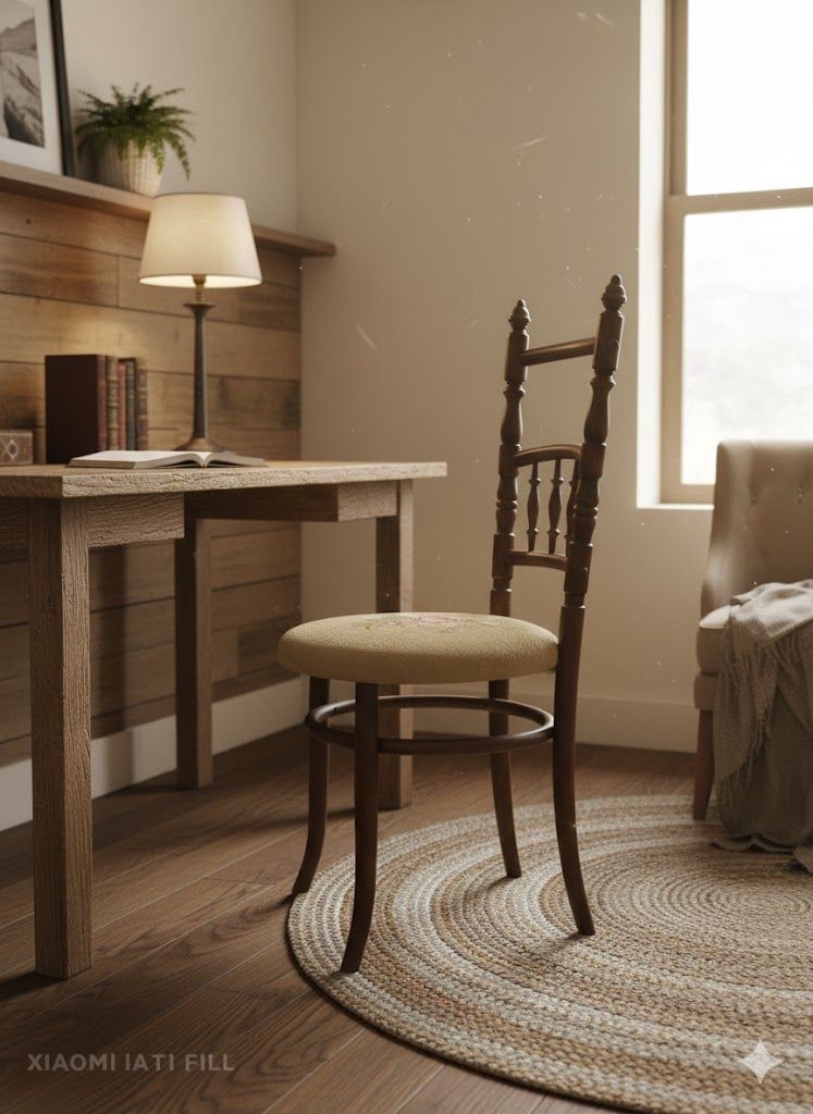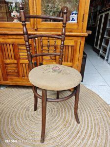 – Diseño: Respaldo torneado, asiento redondo, estructura decorativa