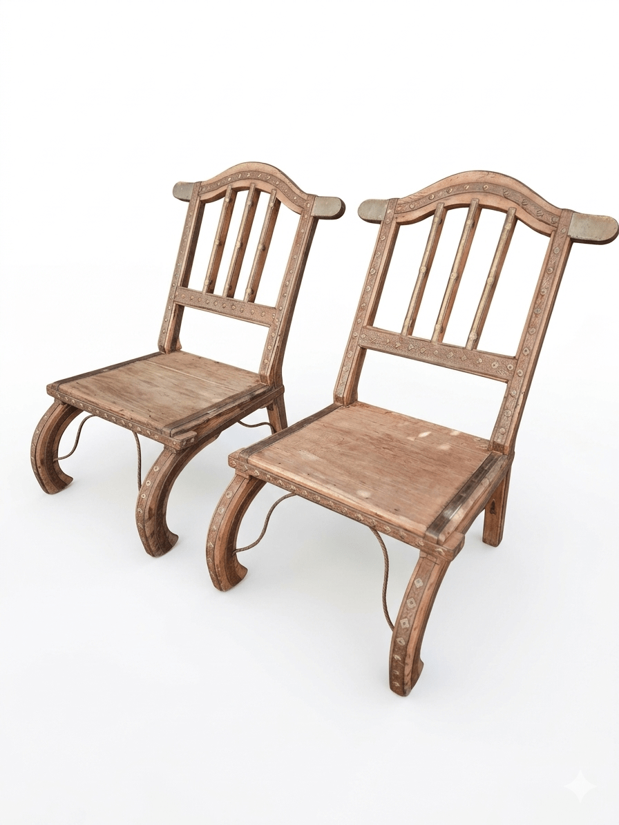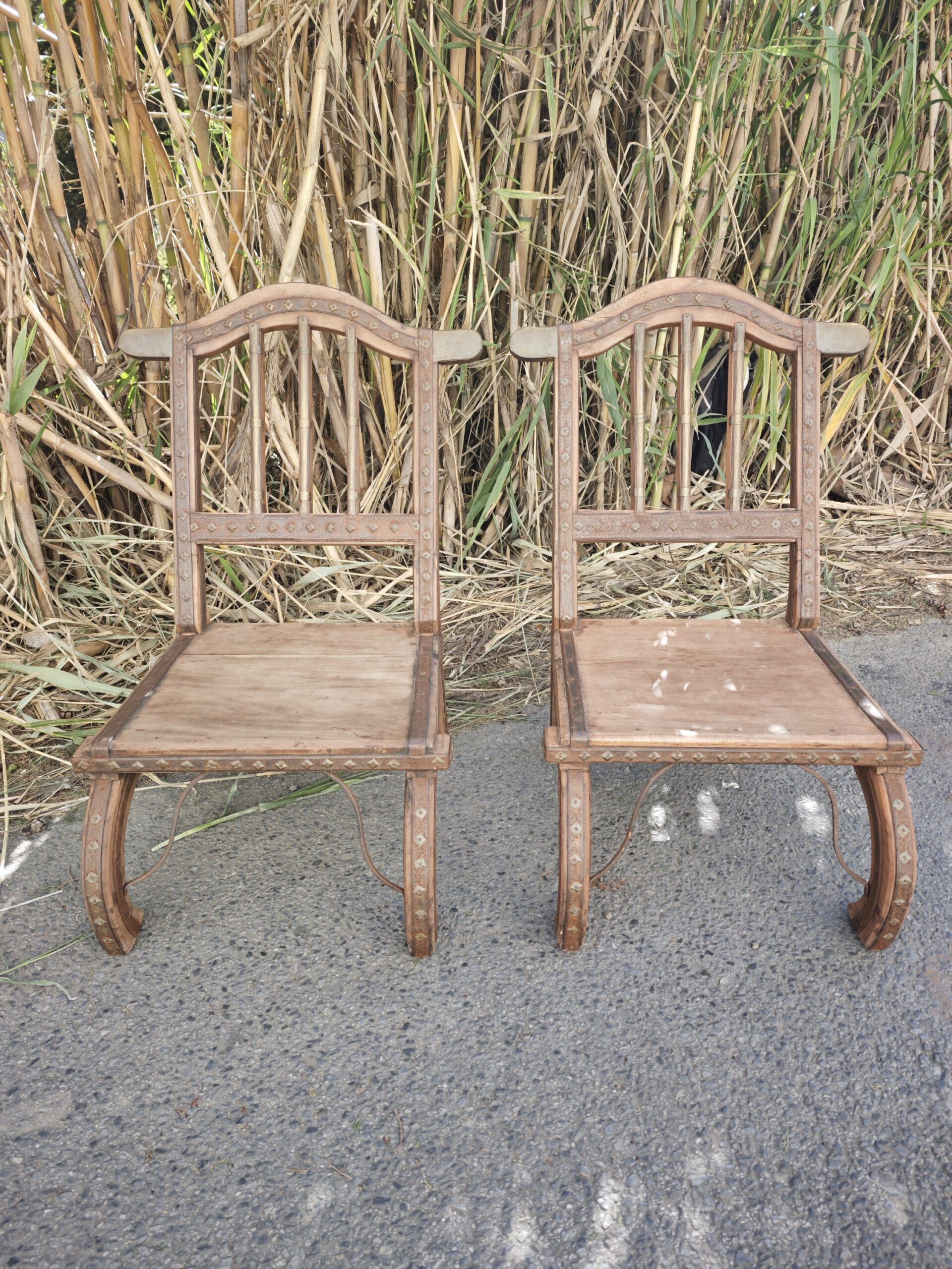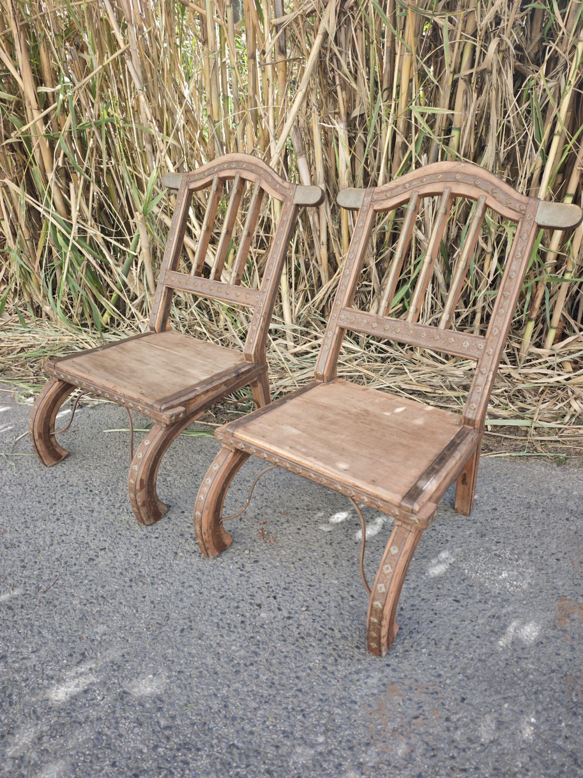 Sillas Anglo-Indias de Época en Madera de Sheesham e Incrustaciones de Latón