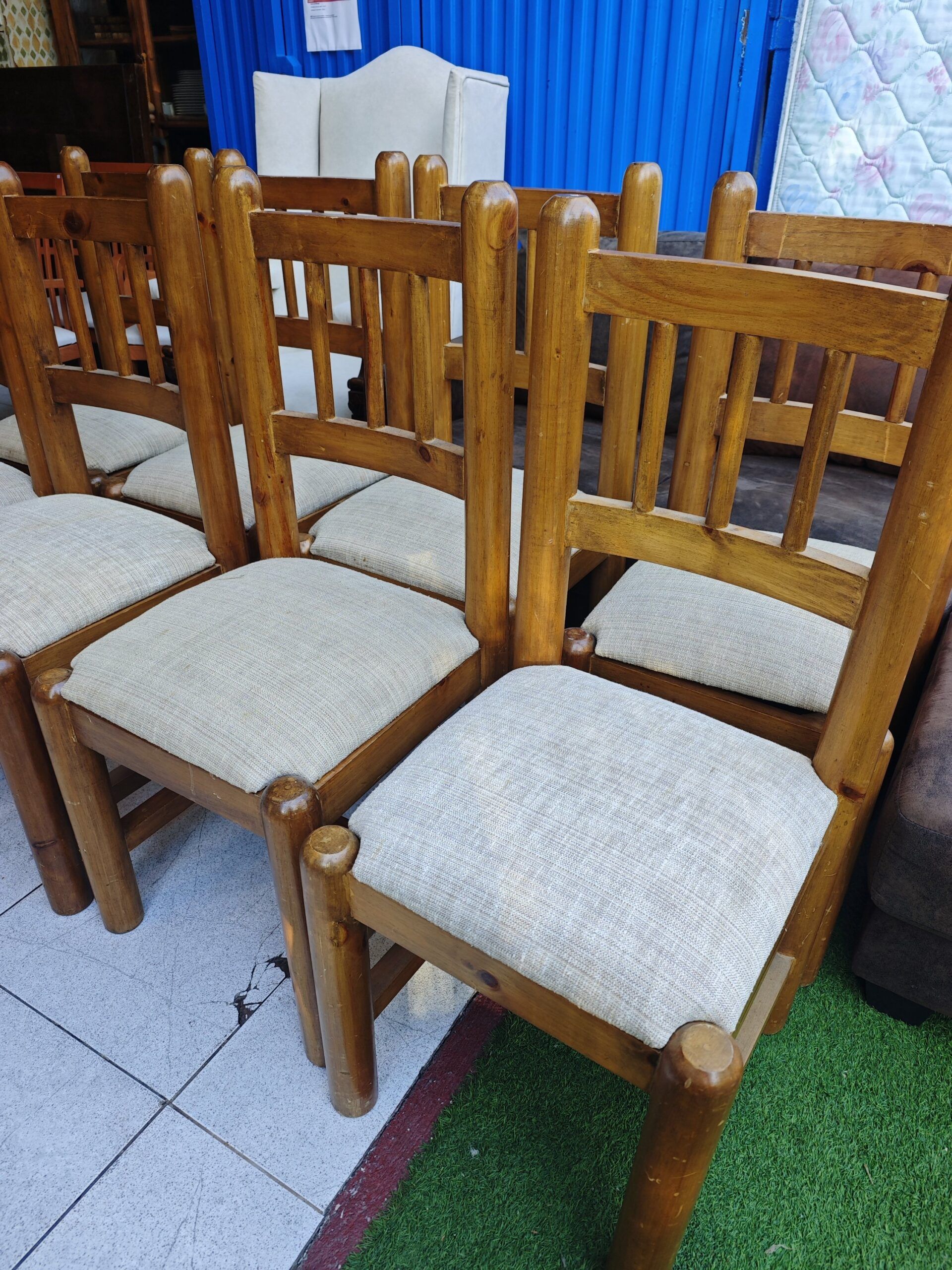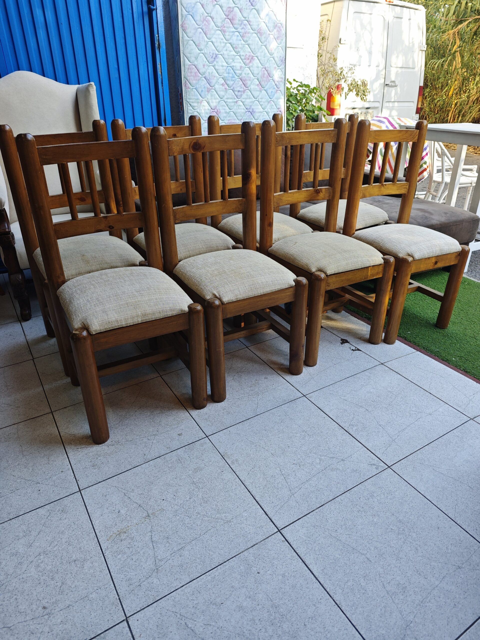 SILLAS RÚSTICAS DE MADERA CON ASIENTO TAPIZADO
