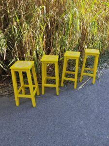 Este taburetes alto Mandala está elaborado en madera maciza y pintado en un vibrante tono amarillo que aporta energía y personalidad al espacio. Su superficie superior está adornada con un diseño mandala blanco, pintado a mano con precisión y simetría, evocando motivos florales y orgánicos en forma circular. Esta pieza combina arte y funcionalidad, convirtiéndose en un elemento decorativo que también puede utilizarse como asiento, mesa auxiliar o pedestal para plantas y objetos decorativos.