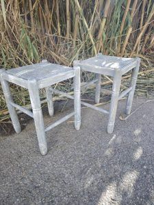 Taburetes Grises Shabby Chic – Encanto Rústico en Formato Compacto